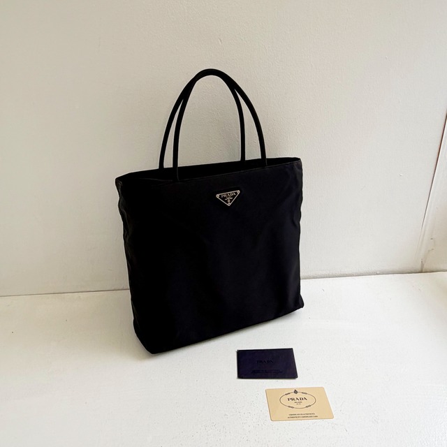 ※ オンラインに掲載されております商品は 店頭でも同時販売しております。 ※ 店頭で完売してしまった商品は随時消去しておりますが タイムラグが生じてしまう場合がございます.ご了承下さいませ. ※Tシャツやカットソー等のインナーウエアーは 店頭でもご試着が出来ません. ※モニター環境により 同じ色が出ない場合がございます. ※古着を扱っております為 多少の臭いがある事をご理解ください 臭いについての判断は においを感じる商品にかぎり 記載させていただきます. ご理解の程お願いいたします. ※購入確定後のお客様の都合によるキャンセルはお断りさせていただいております. ※ 中古品.ヴィンテージという事を前提に ご理解をして頂きました上で ご購入をお願いいたします. 商品につきましては お電話にて随時お問い合わせください. 店舗ではオンラインショップには無い商品も多数ございます。 是非ご来店も お待ちしております. PRADA ナイロン レザー ハンドバッグ 素材 ナイロン レザー カラー ブラック 金具 シルバー イタリア製 入口はファスナーが付き安全面も◎ 内側 ファスナーポケット1つあり 男性にも◎ 女性にも◎ 【商品コンディション】 目立つ傷や汚れの無い 綺麗なヴィンテージコンディションです. 臭い無し. ギャランティーカードあり size 高さ 43④ 縦 27cm 横 27cm 持ち手長さ 38cm