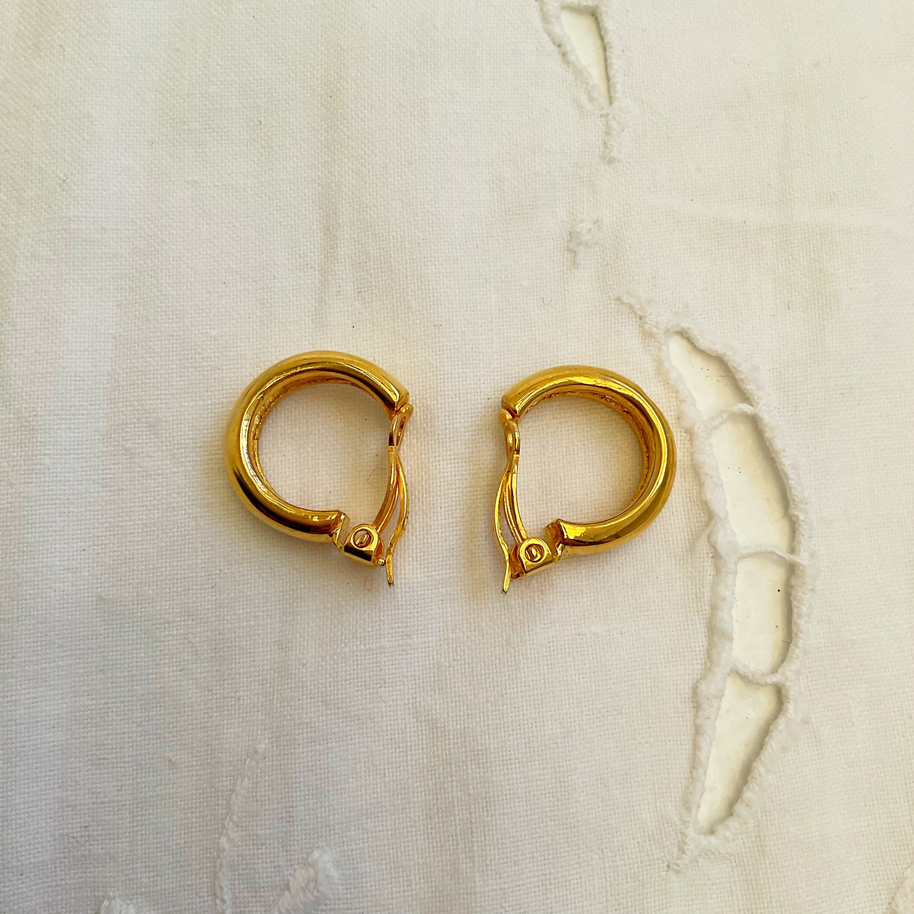 シンプルなフープイヤリングに、