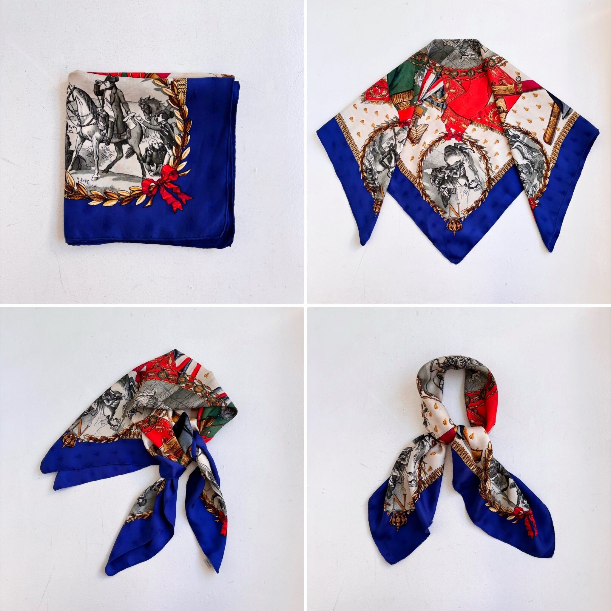 ナポレオン柄 シルク 大判 スカーフ