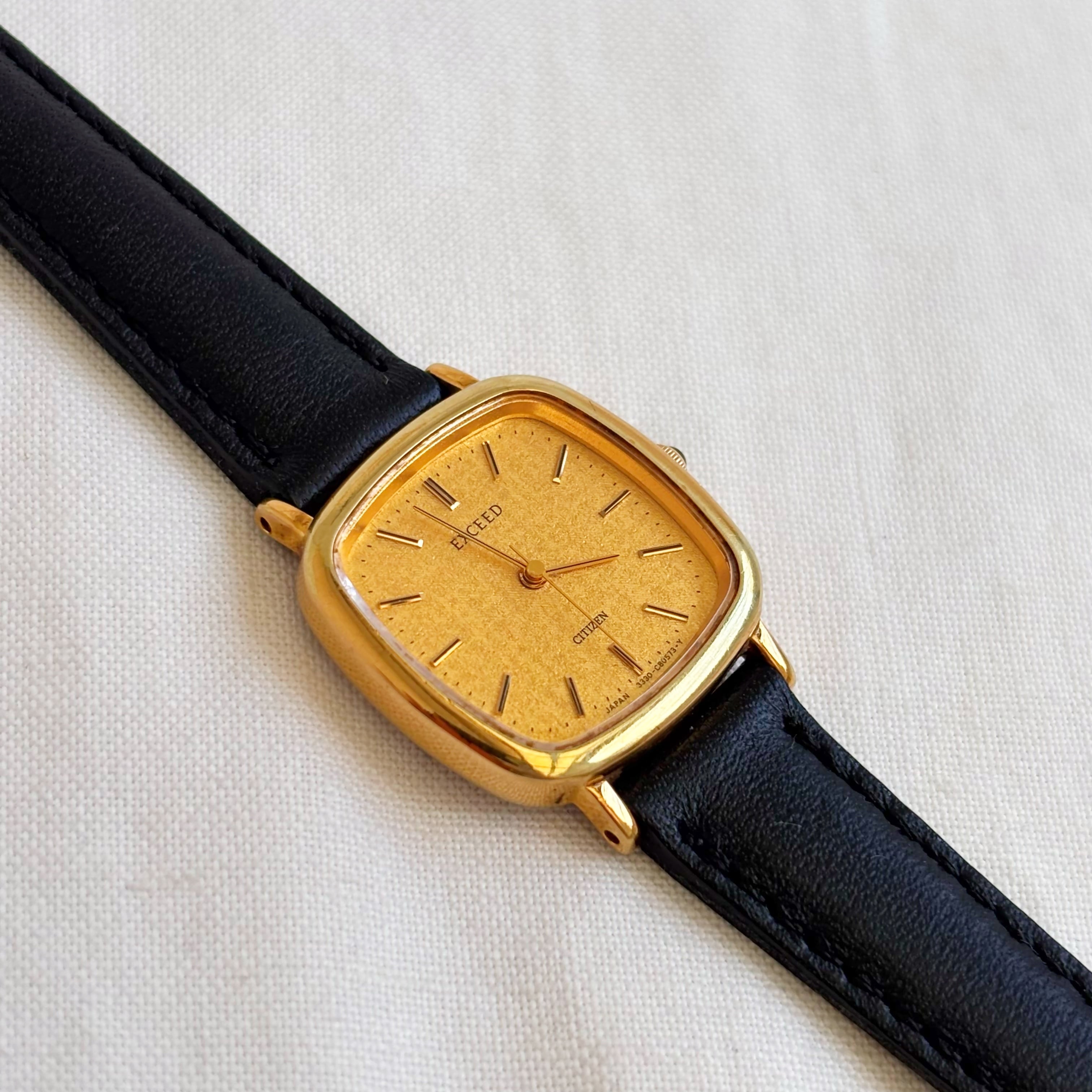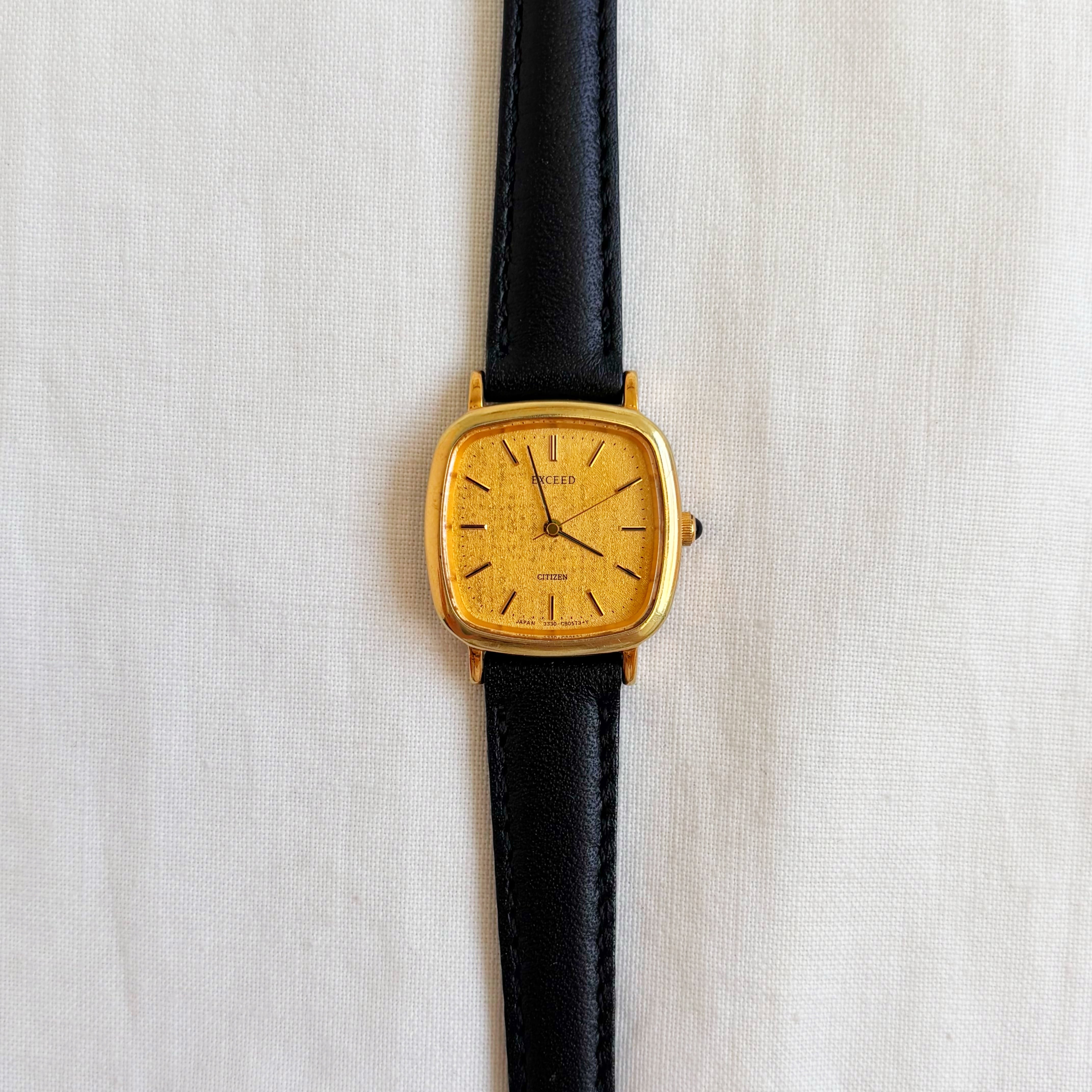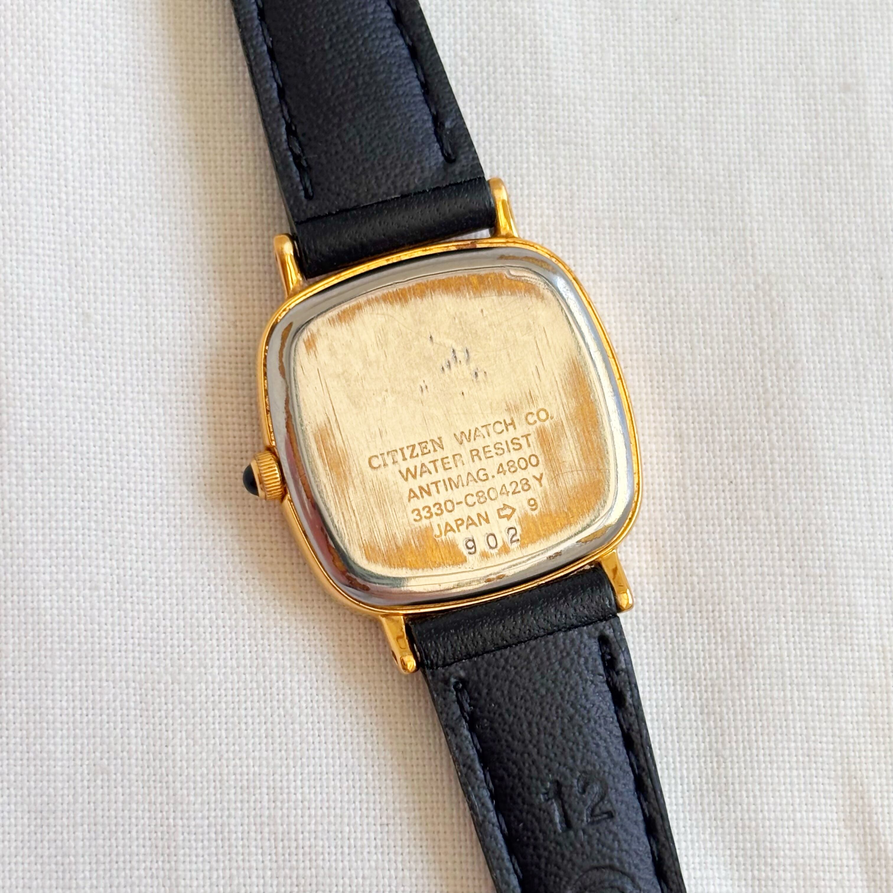 CITIZEN square face leather belt watch