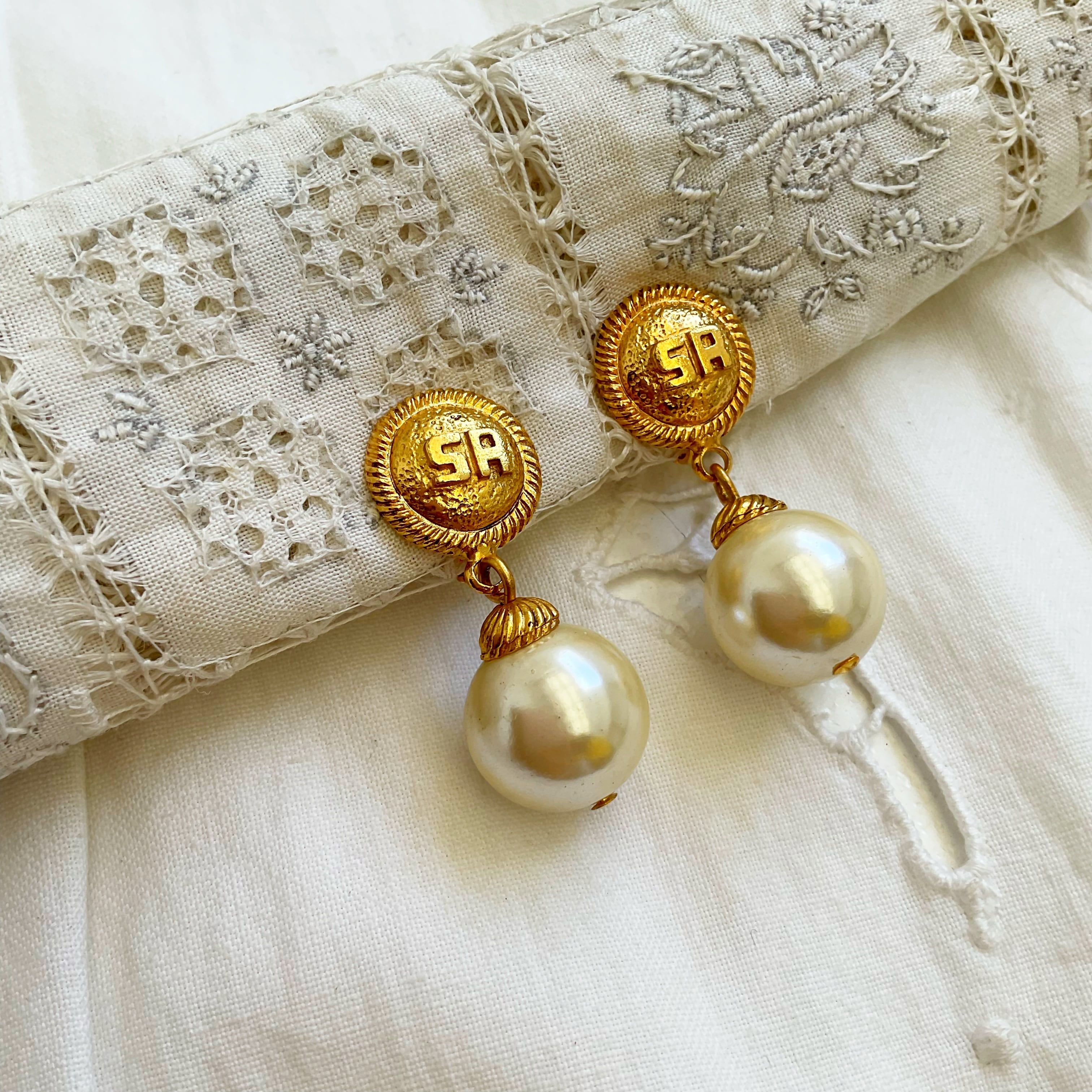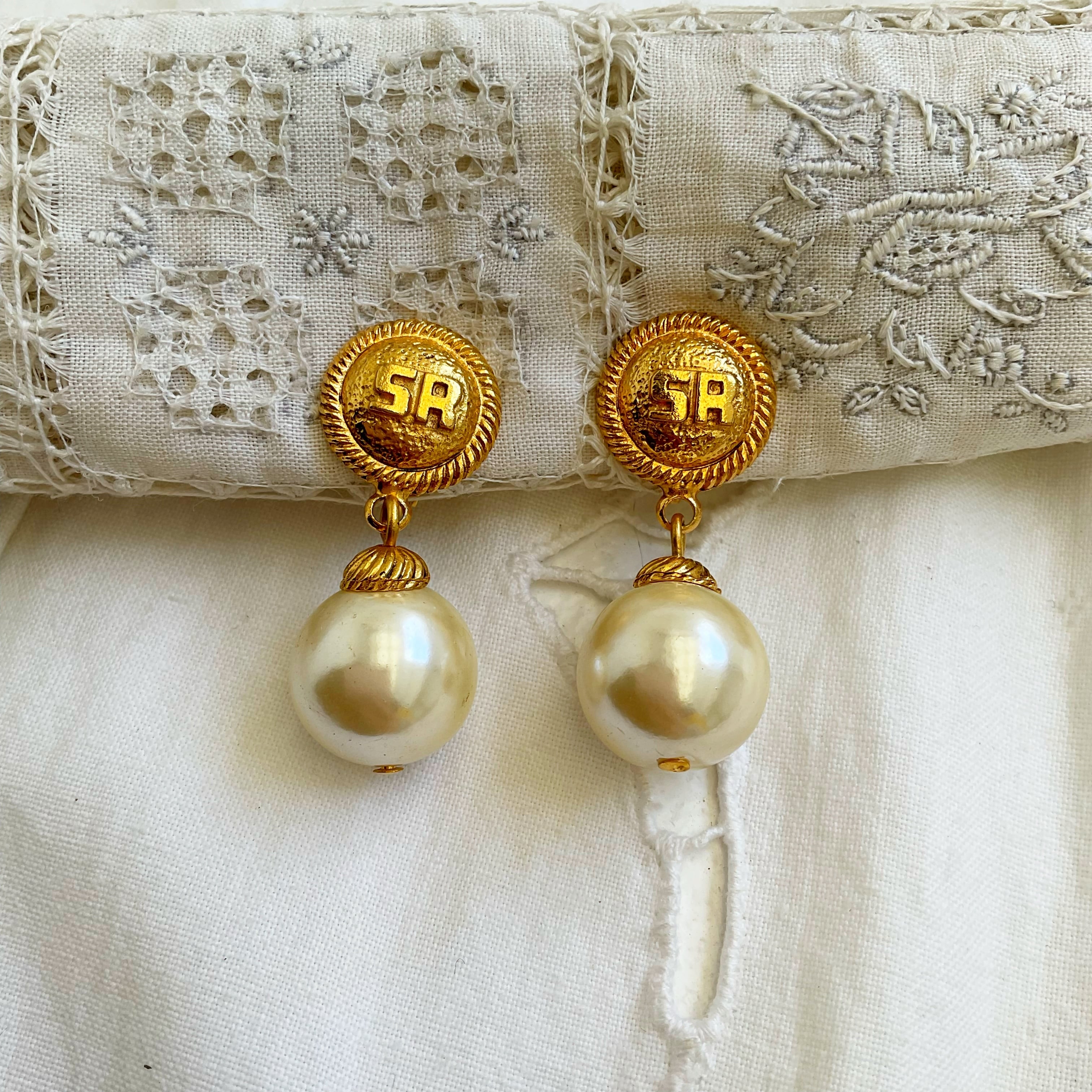 -dead stock-SONIA RYKIEL logo × pearl earrings
