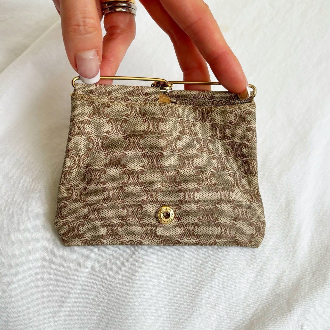 フロントには セリーヌ馬車金具のボタンが着いたデザインになります、