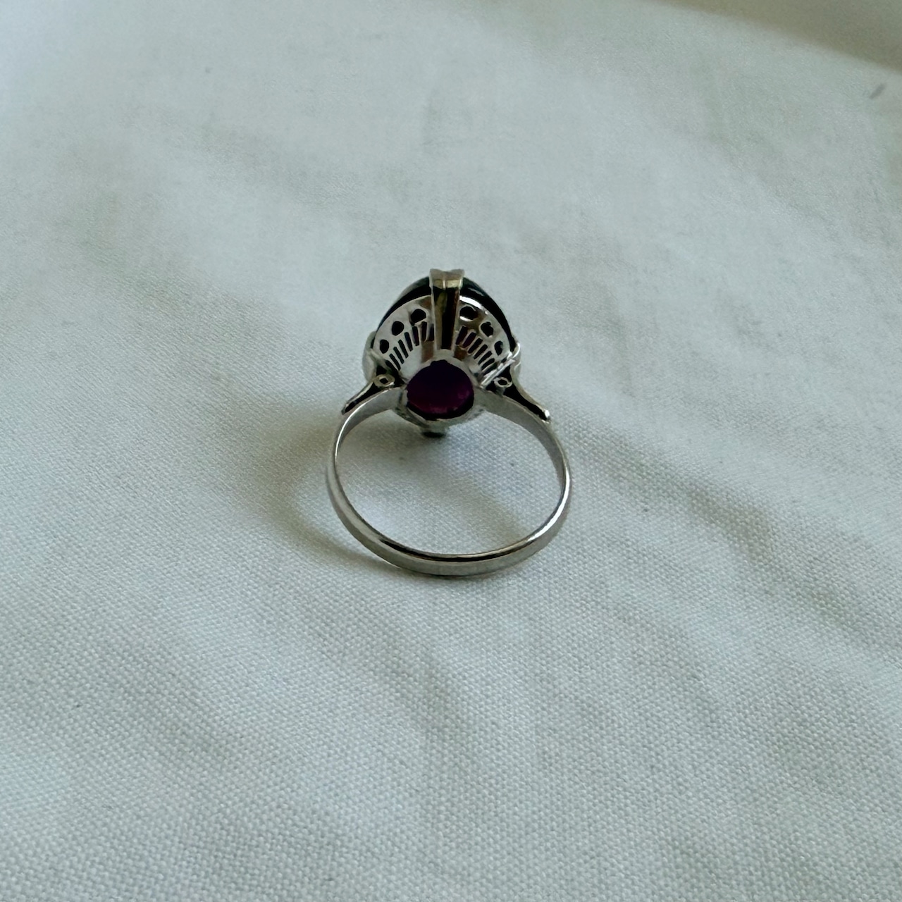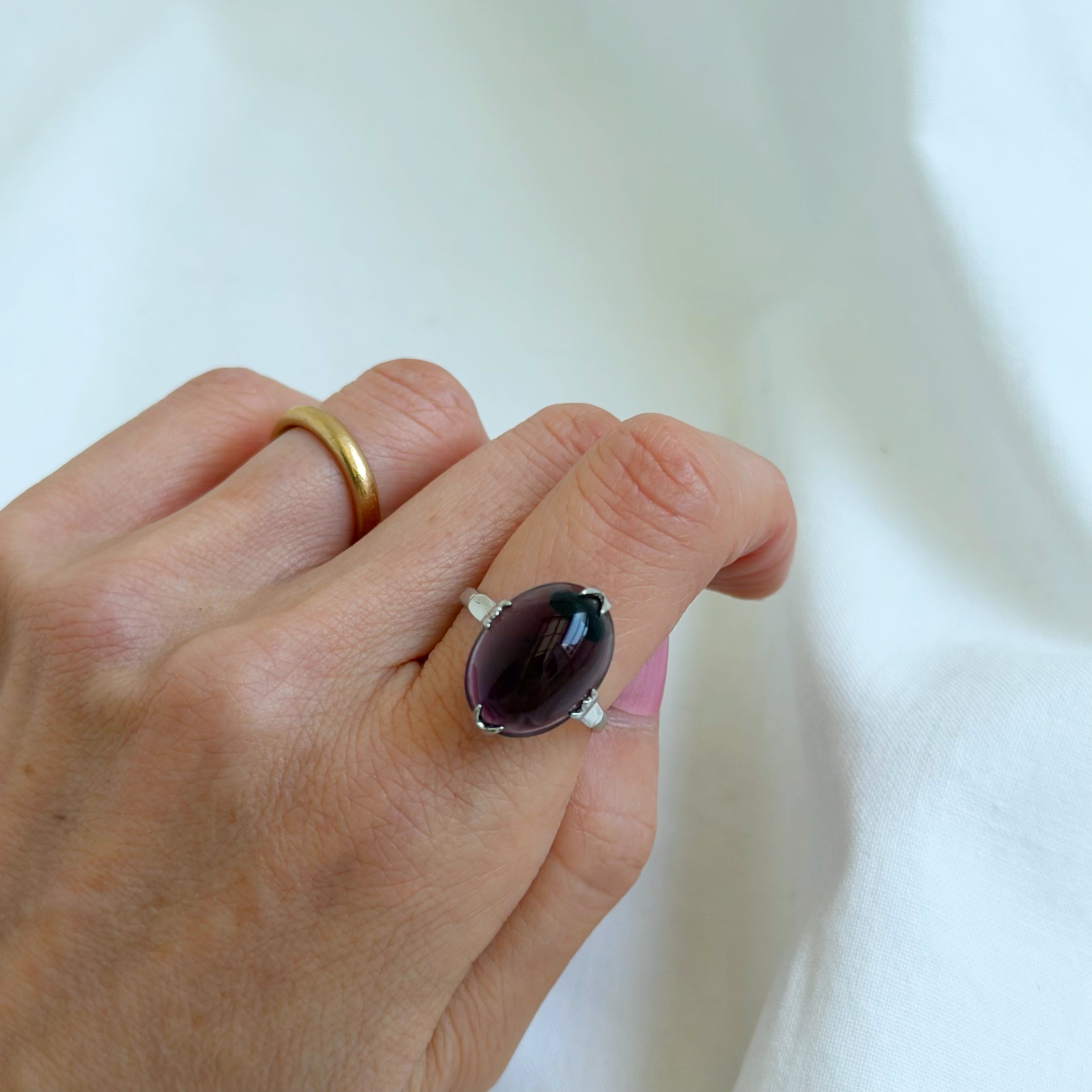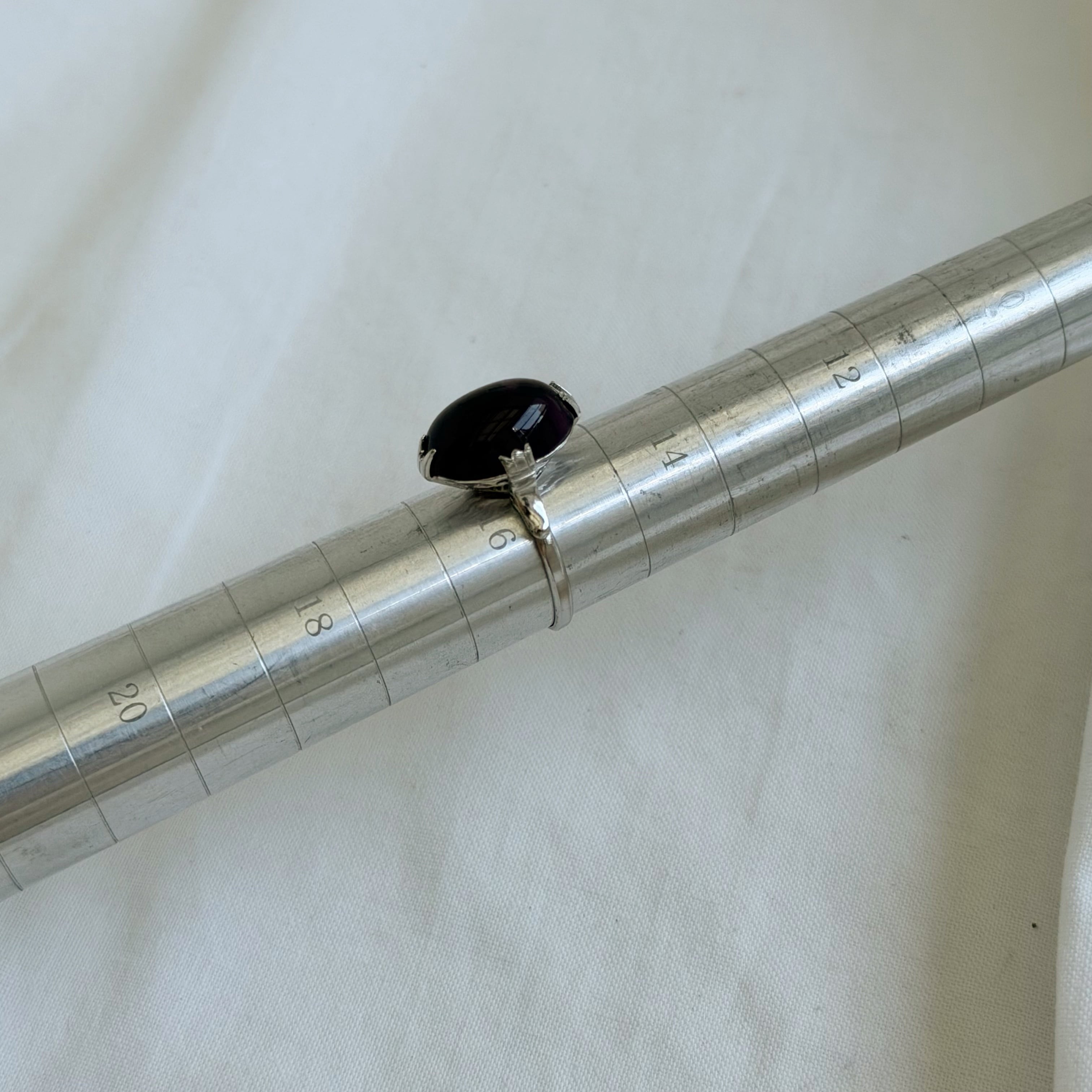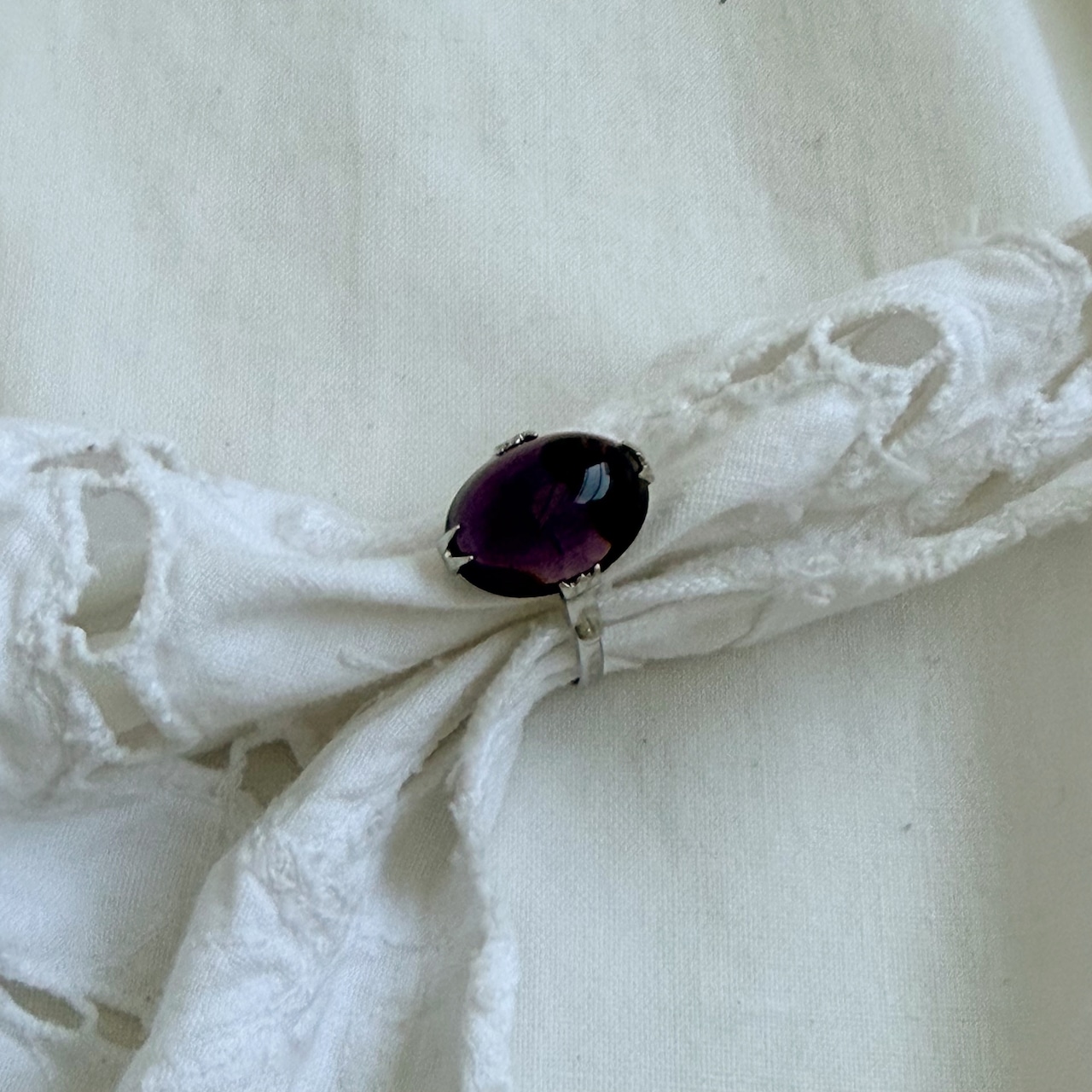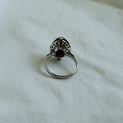 華奢なリングにオーバル型のクリアな存在感のあるパープルのストーンがつきます♪