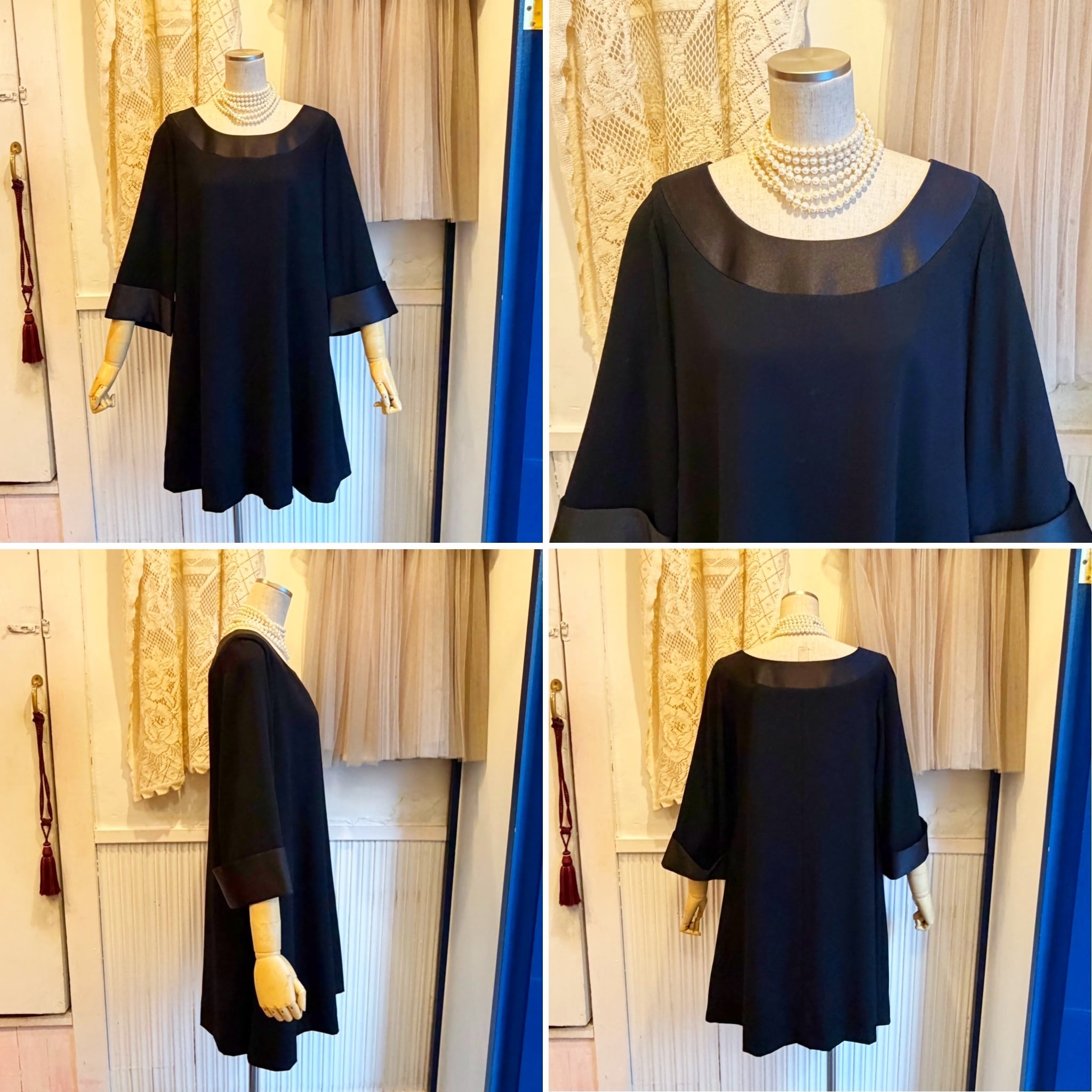 襟と袖口がサテン生地になります。