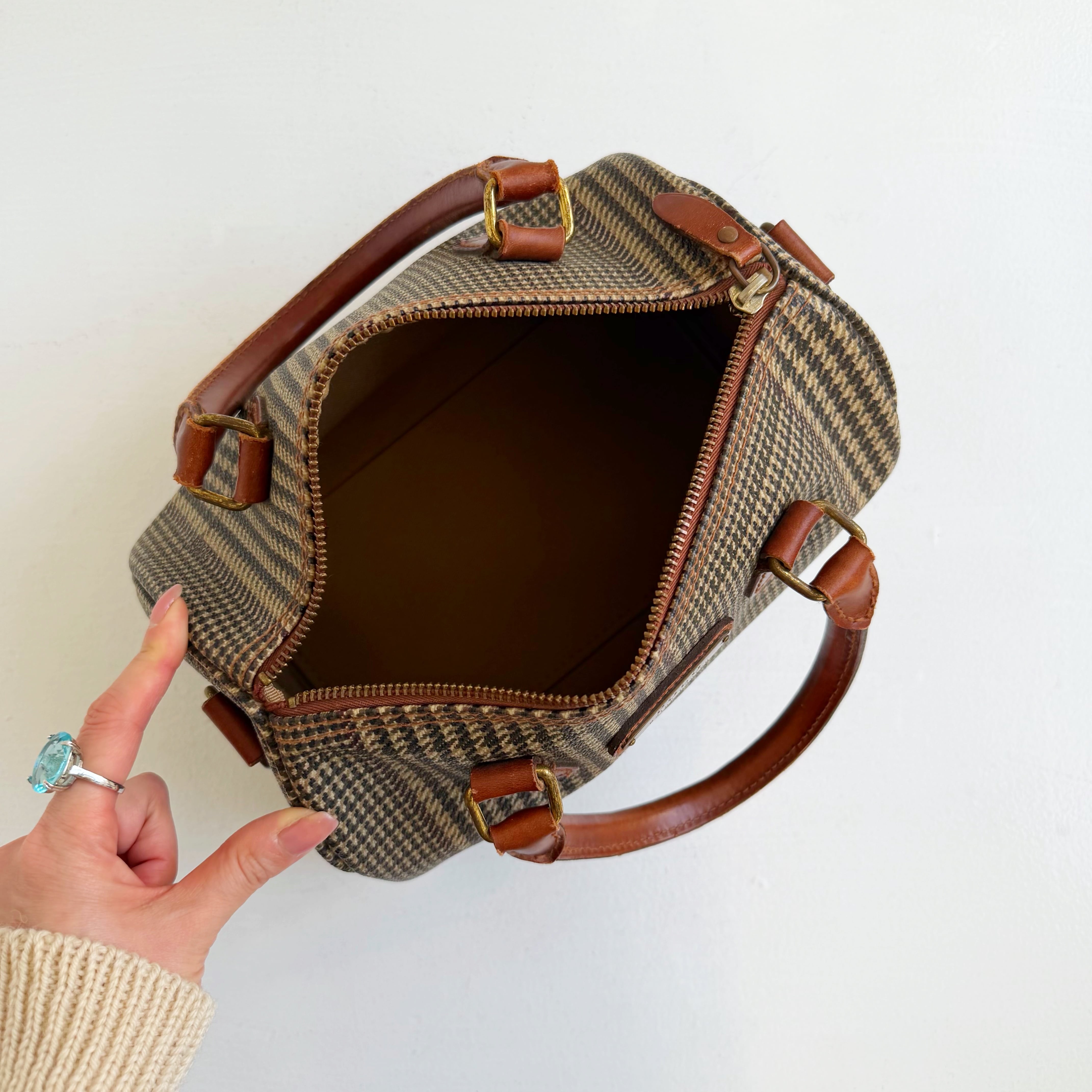 グレンチェック ボストン ハンドバッグ