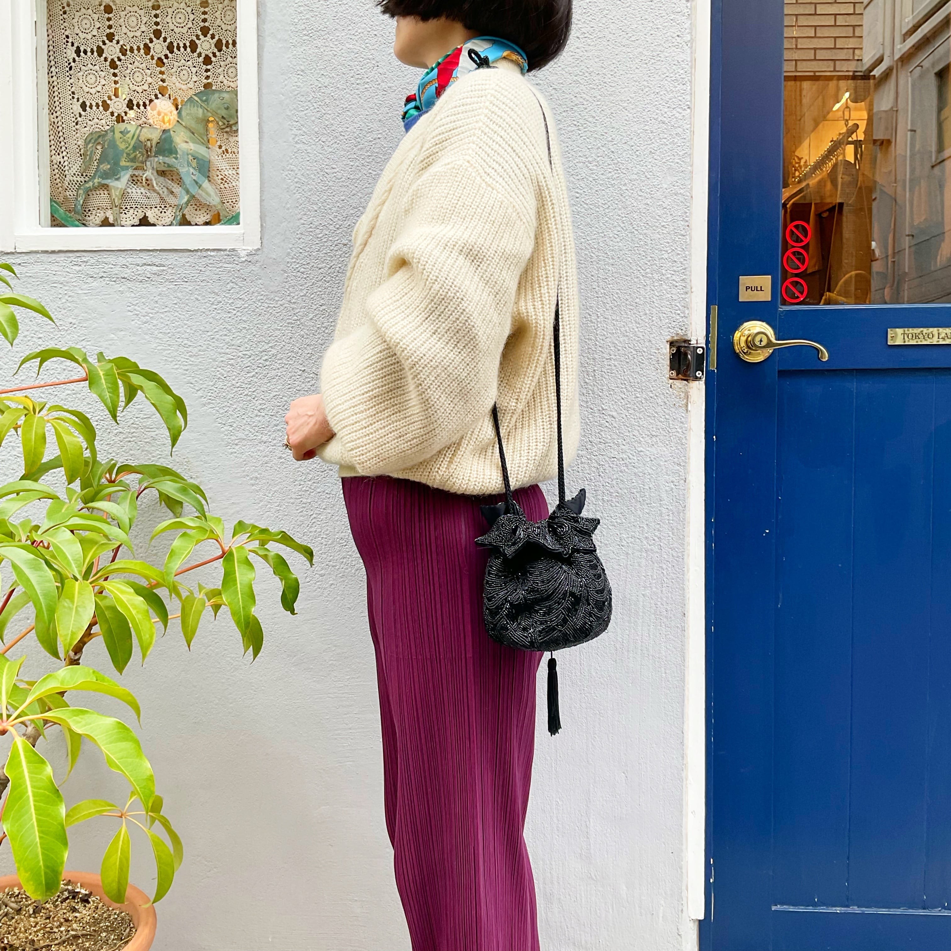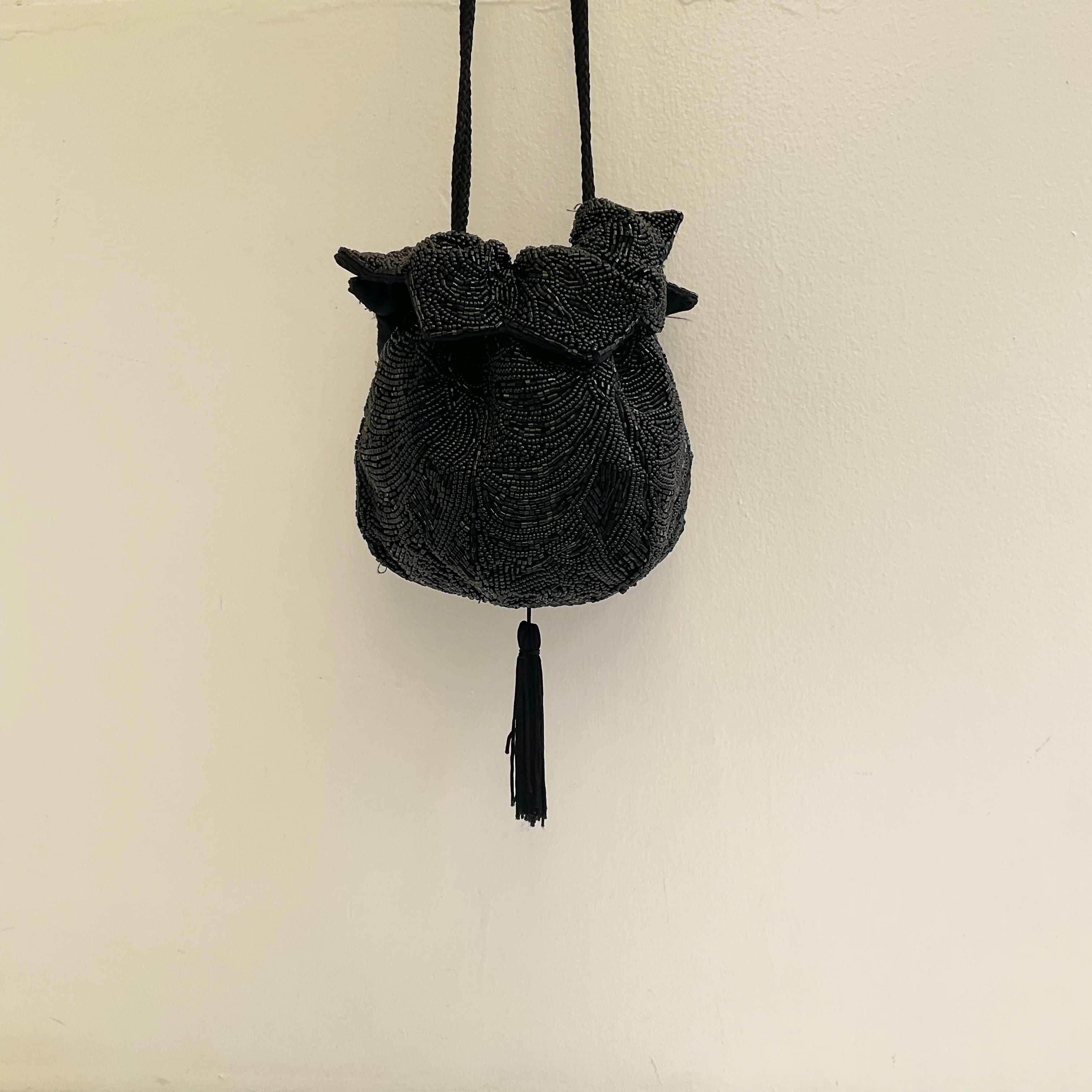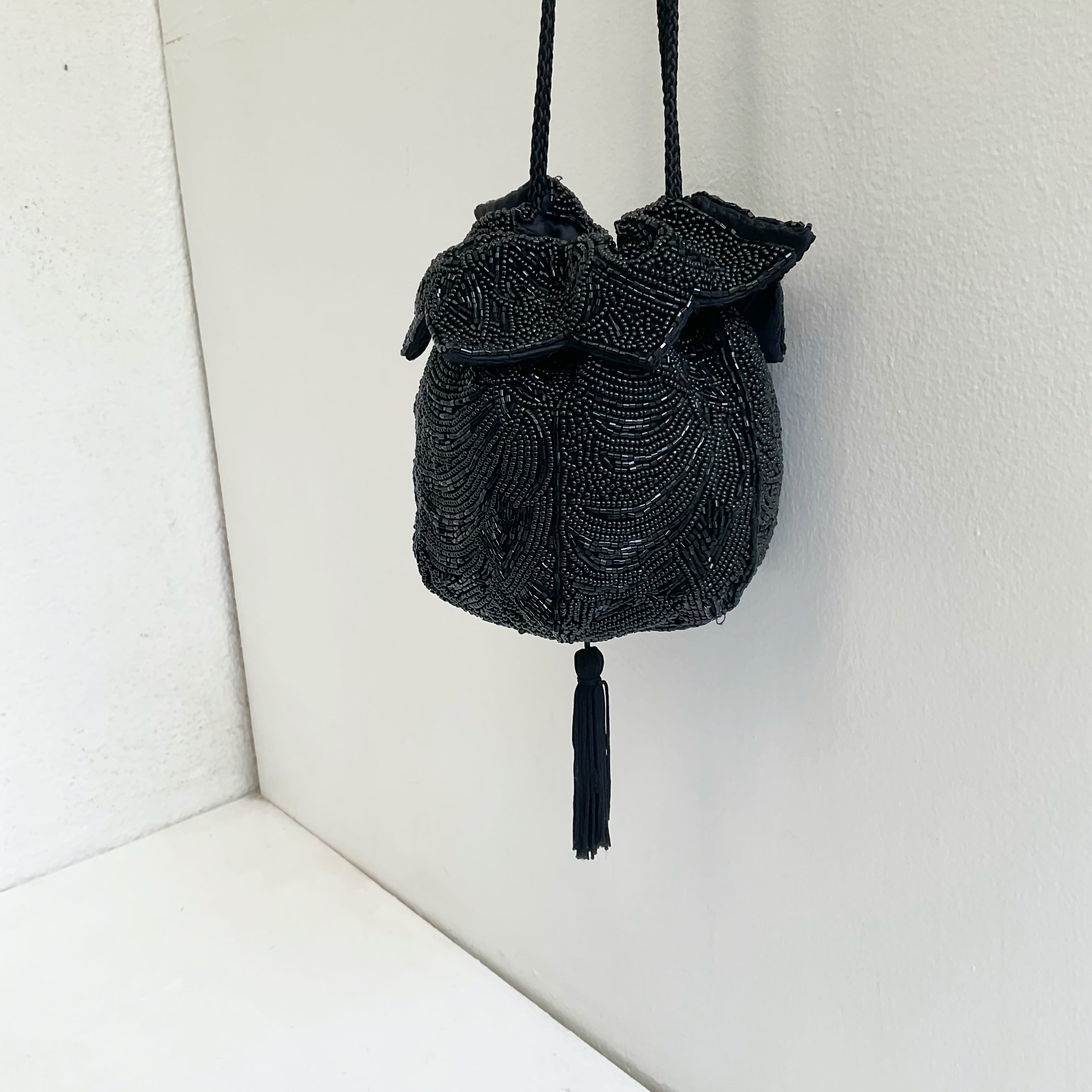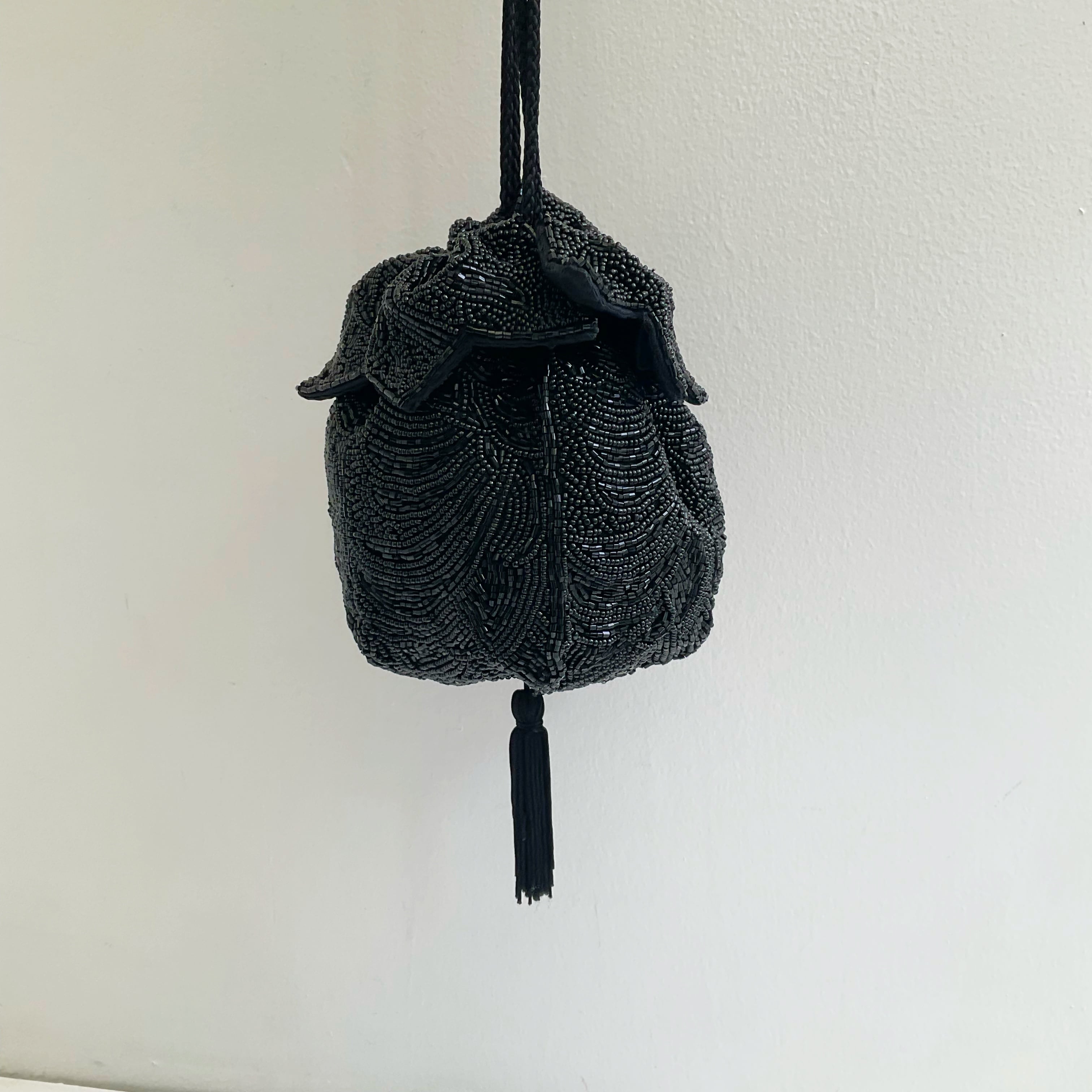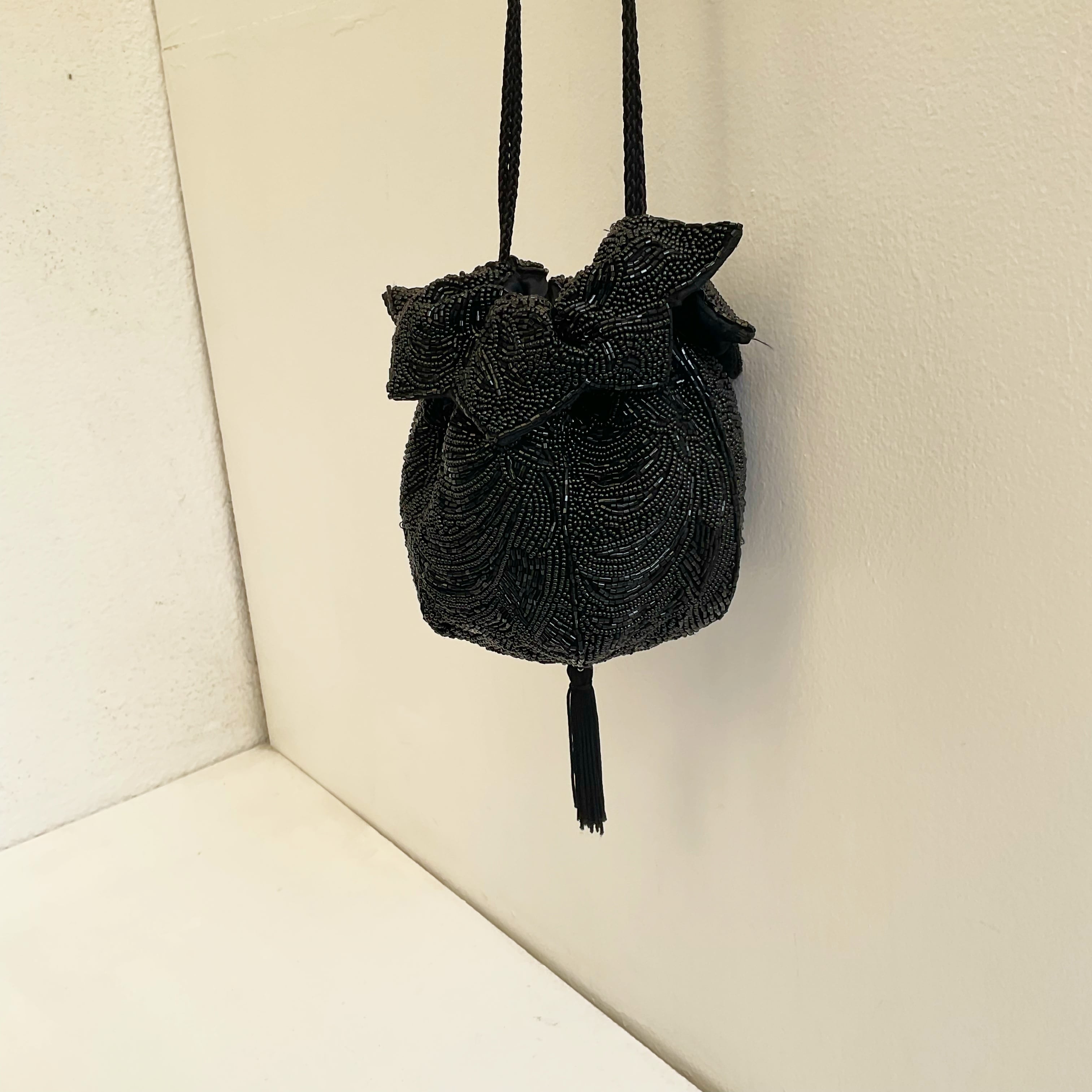 vintage beads drawstring bag
