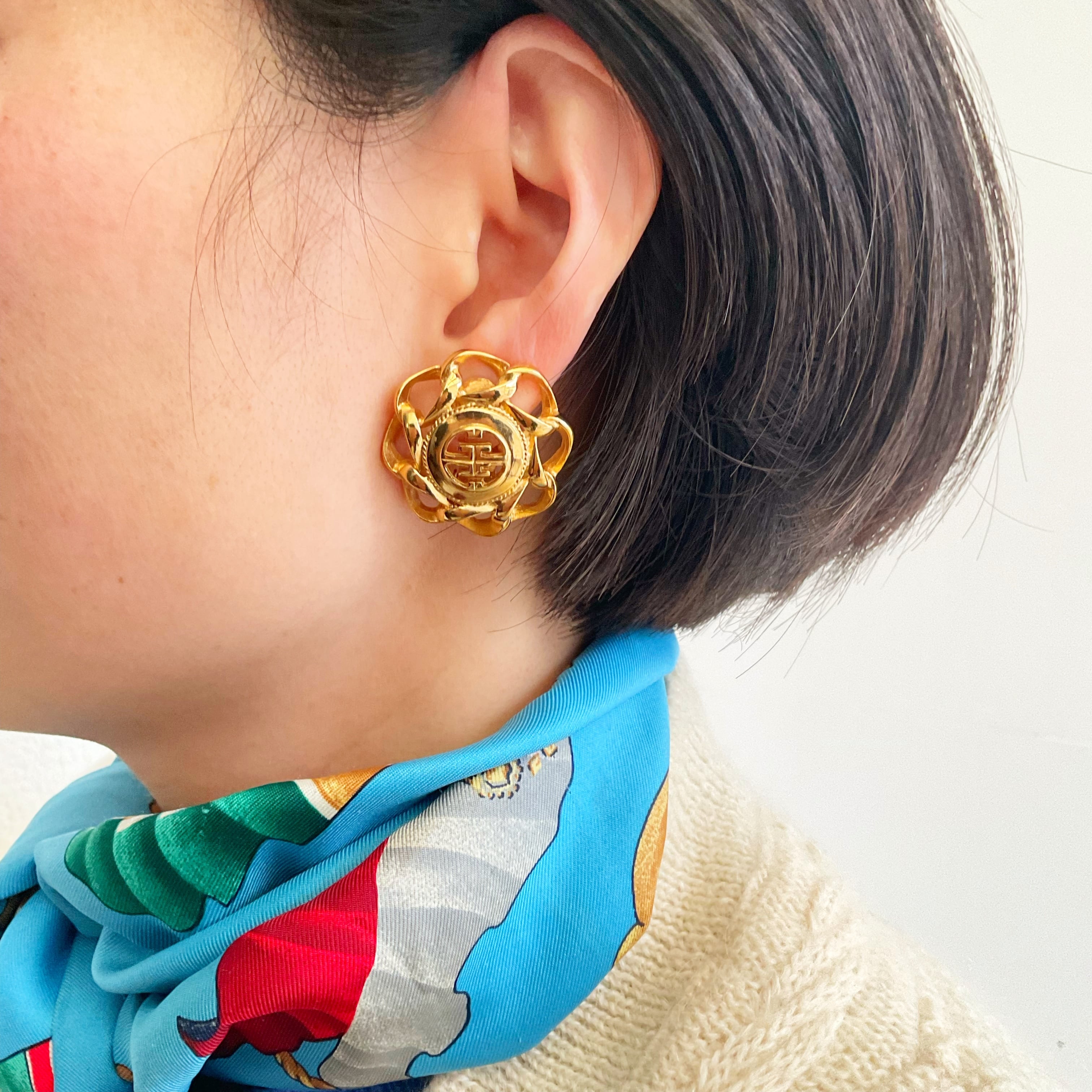 ロゴ× チェーンサークル イヤリング