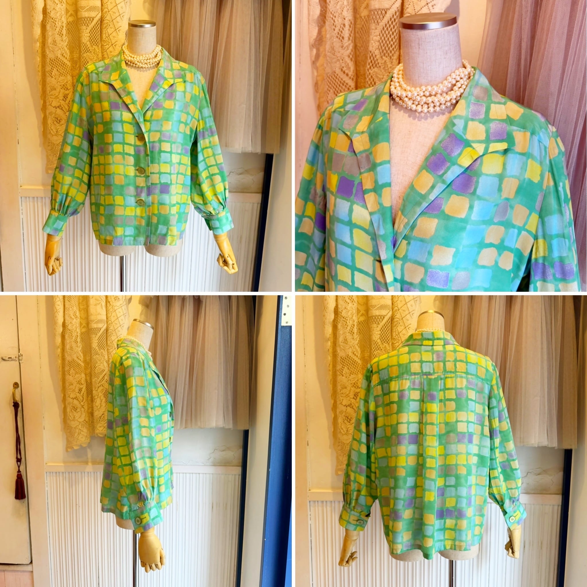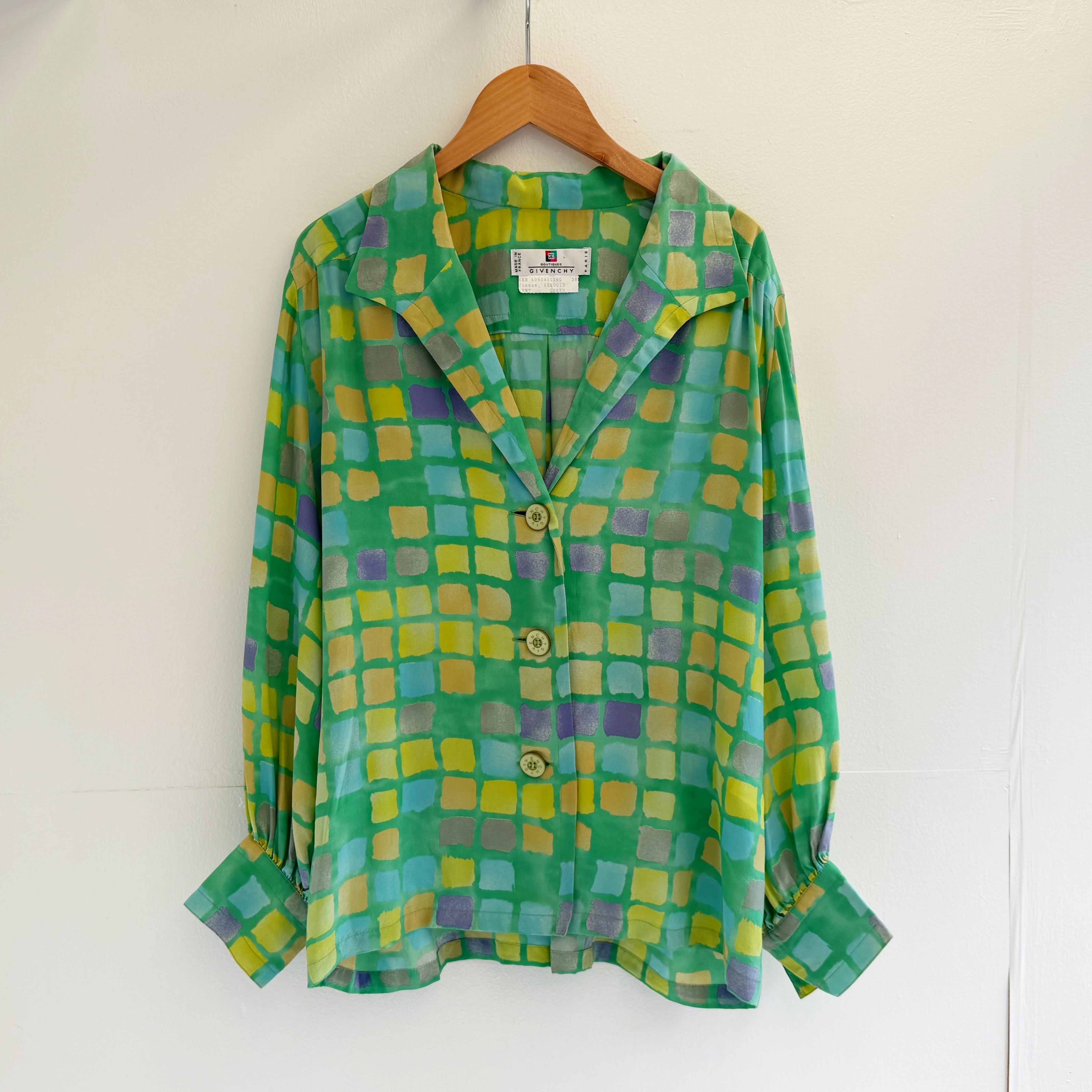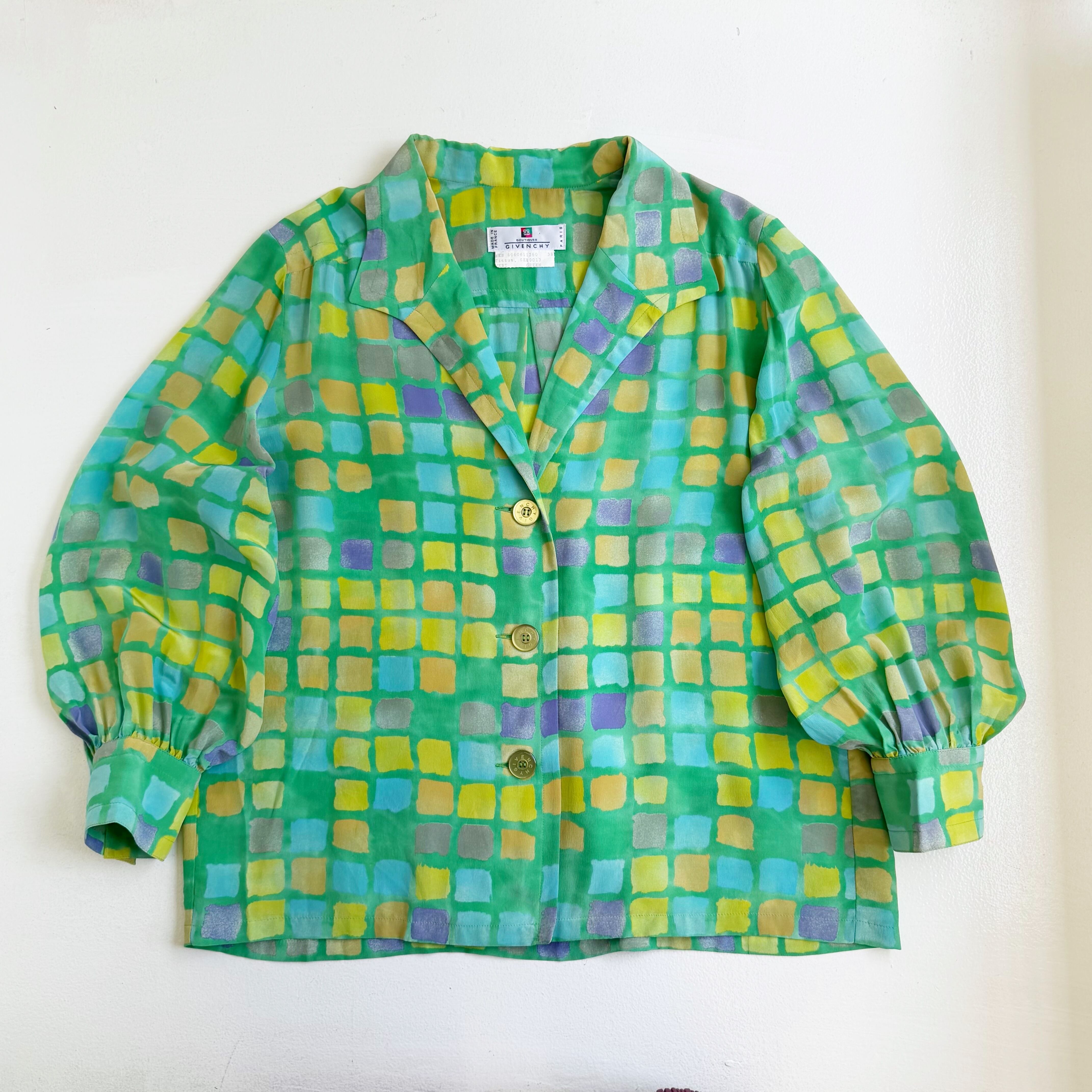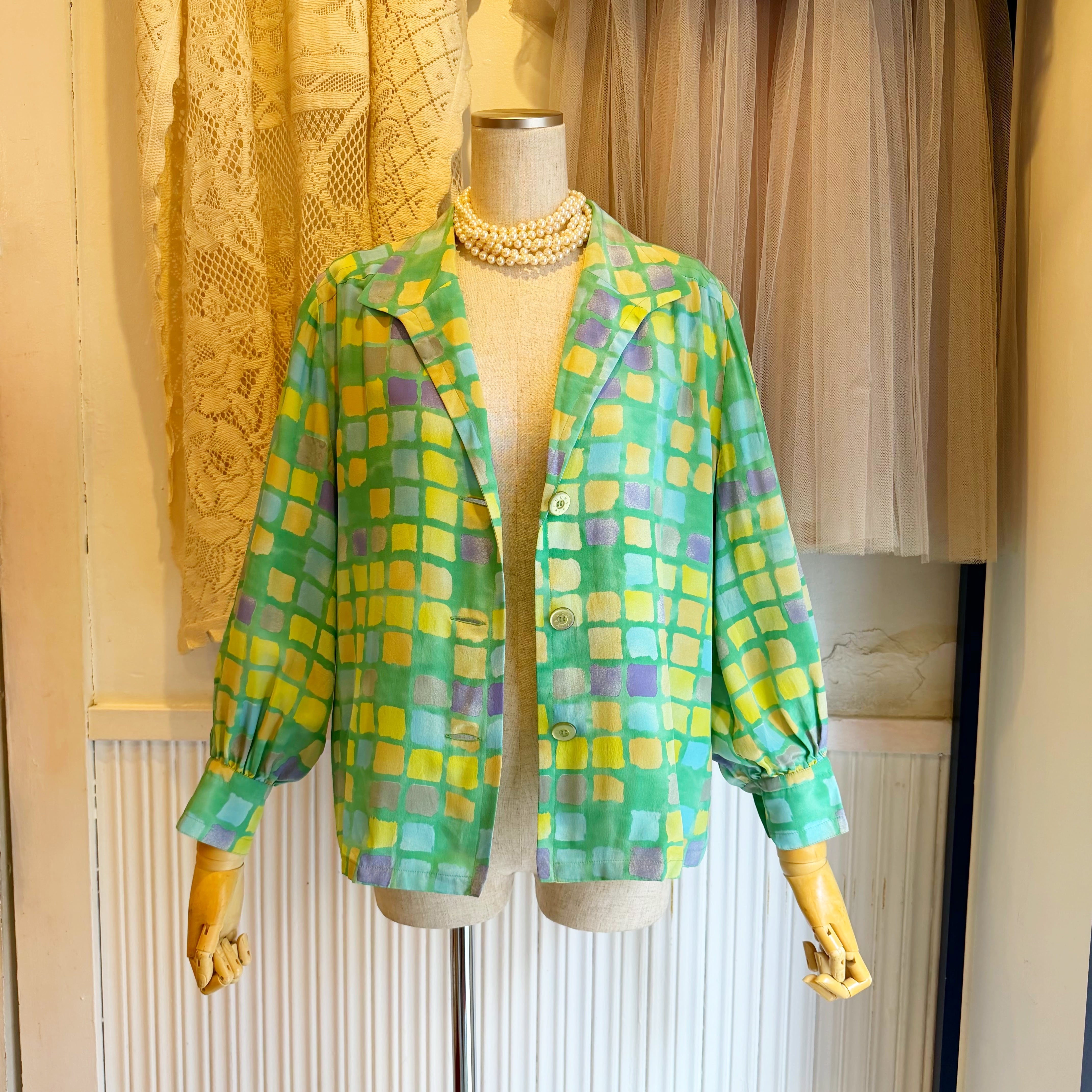淡い鮮やかなカラーのシルクシフォンシャツになります.