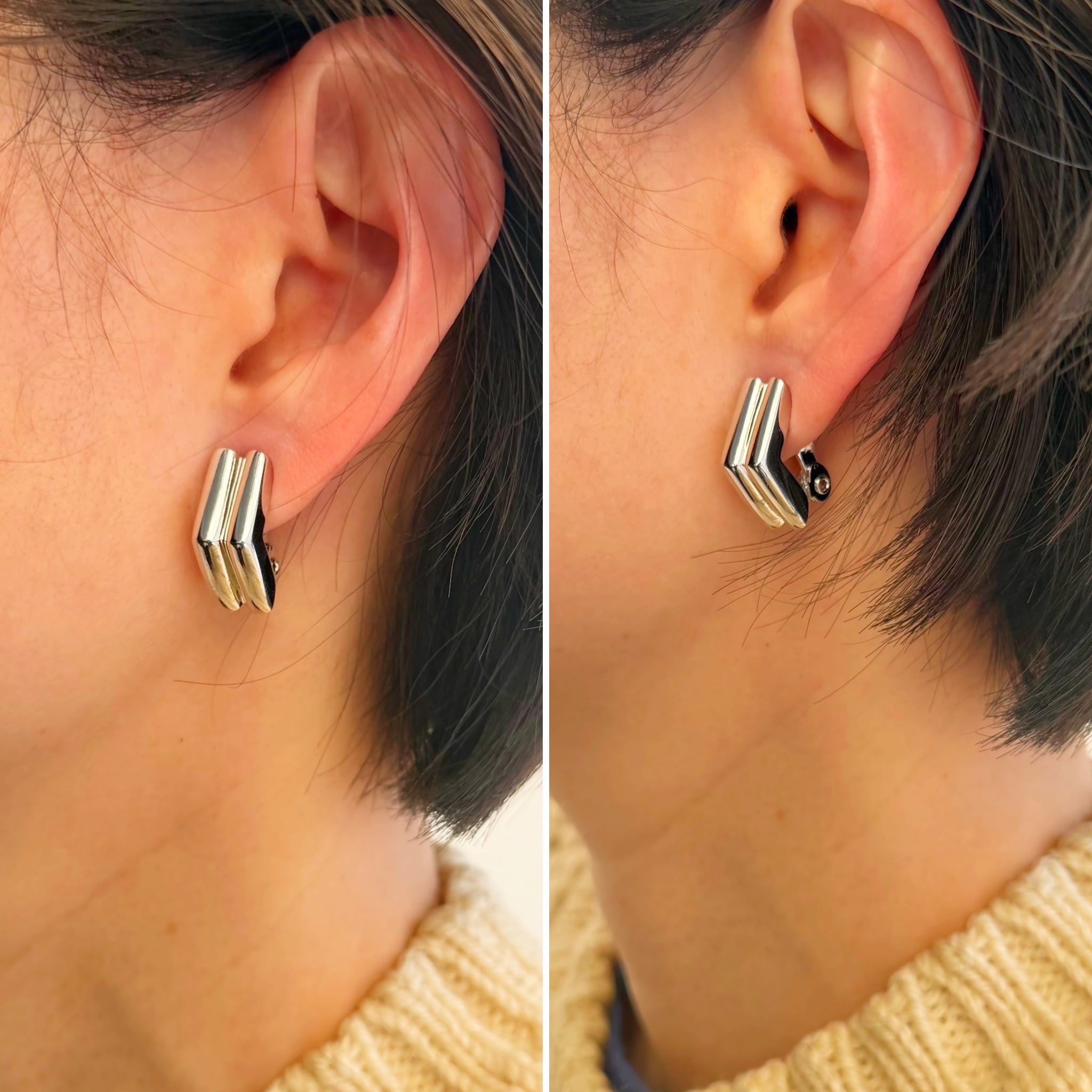 ご自身の耳たぶの厚みにそってフックで調節が出来ます、