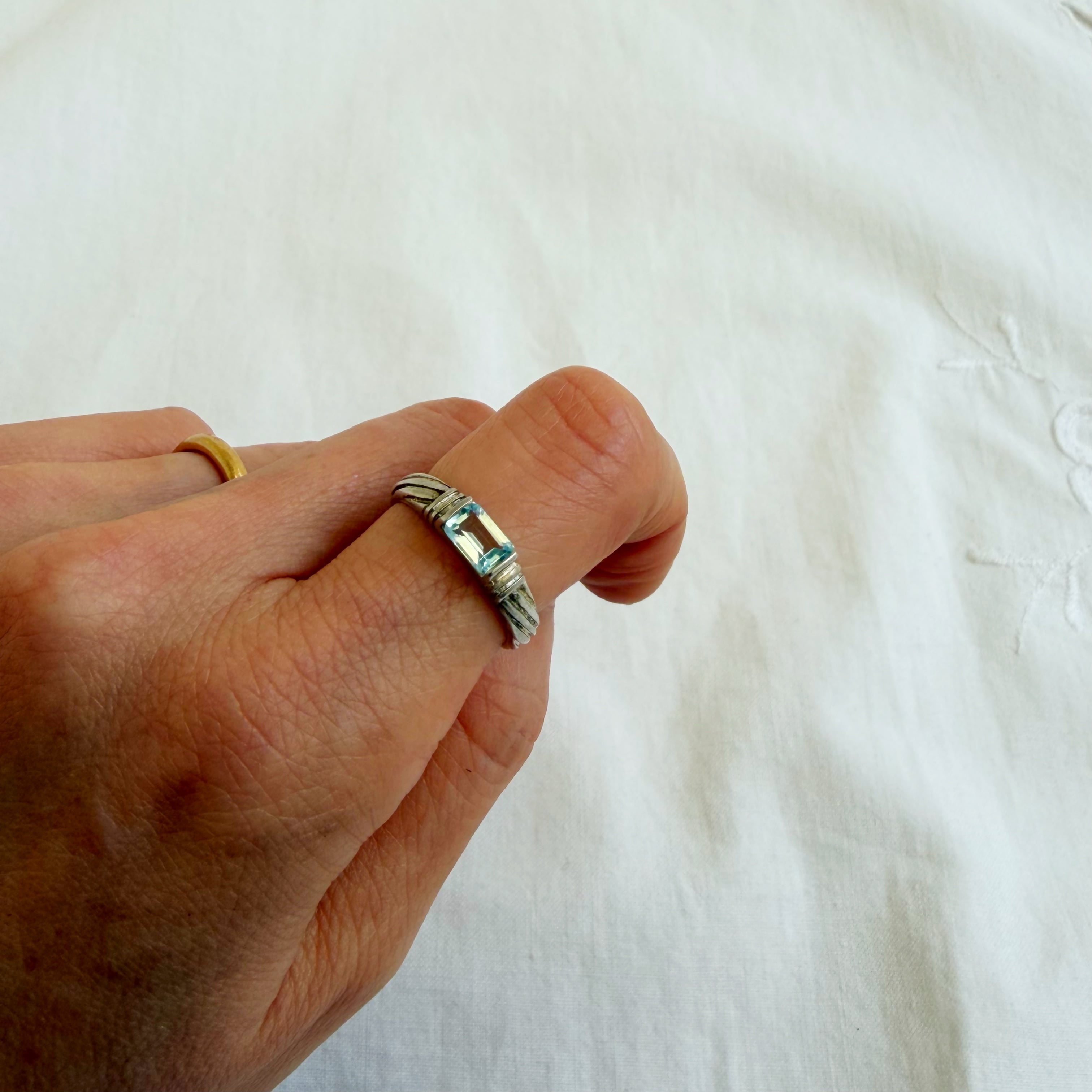 ツイストデザインリングにスクエアーのトパーズが エレガントで素敵です♪