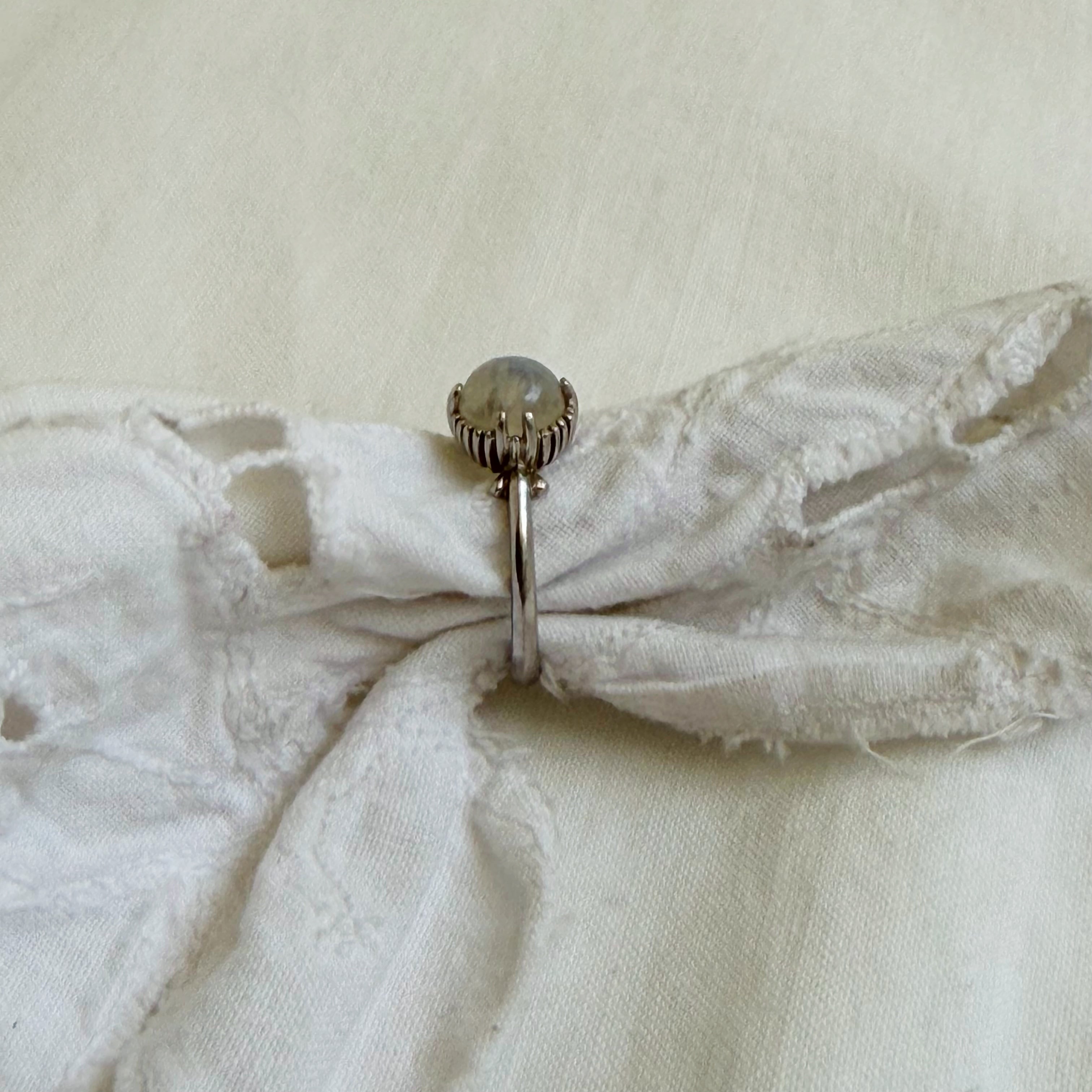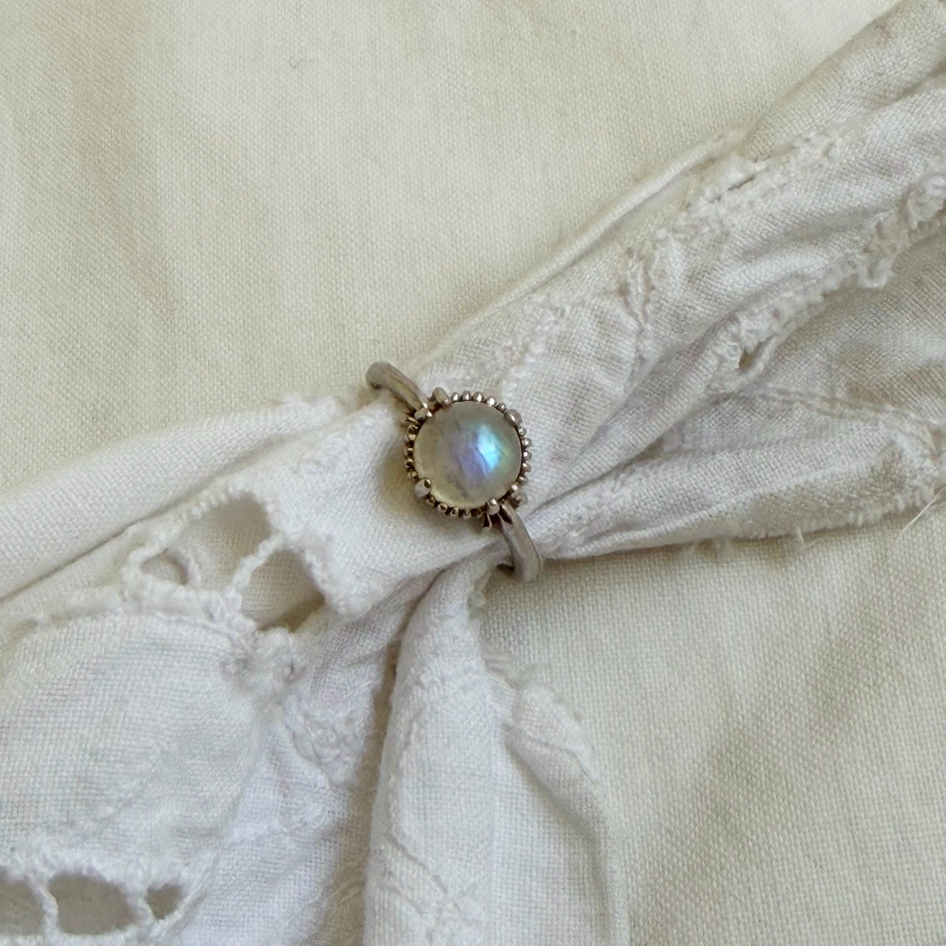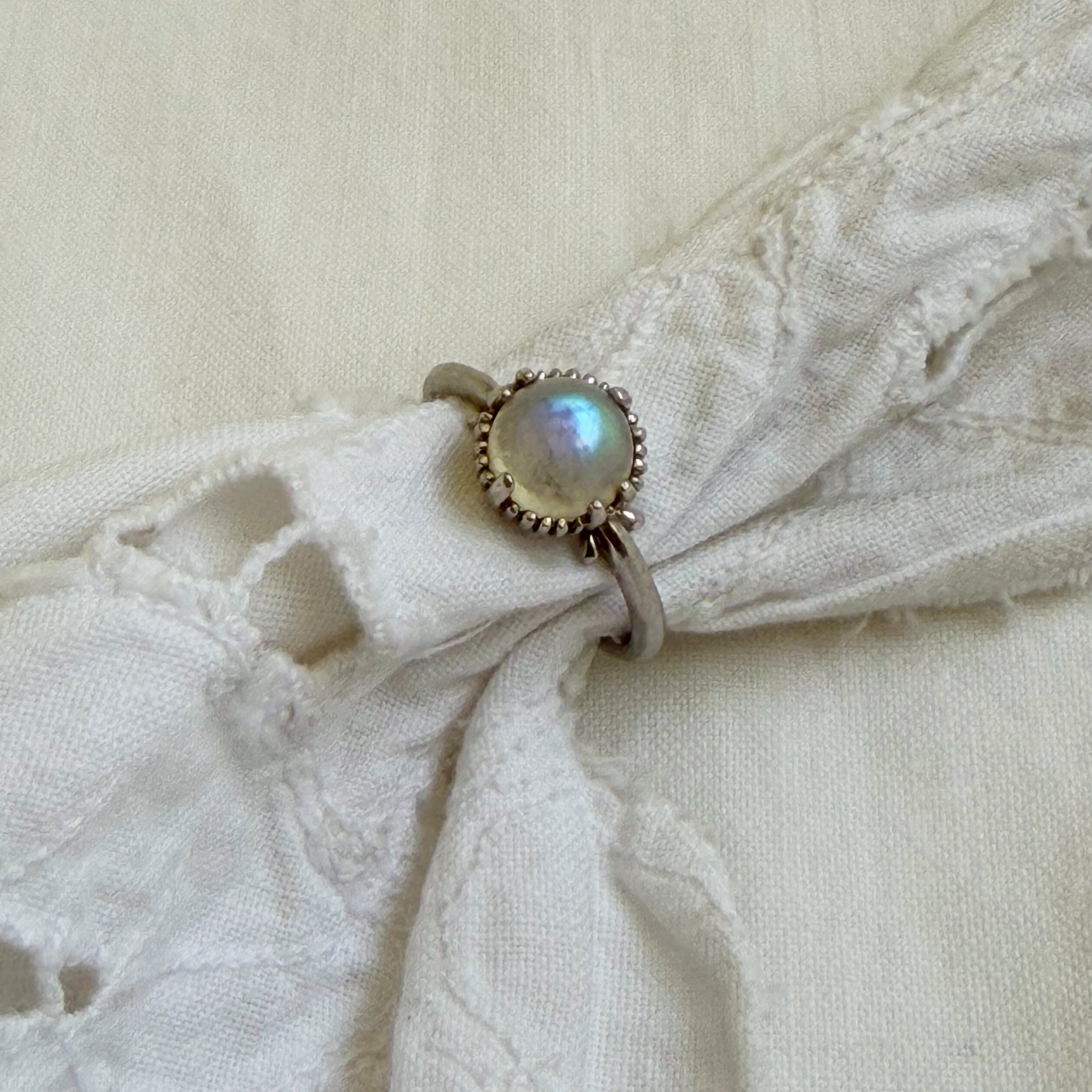 タマムシ色のムーンストーンカボションカットリングになります♡