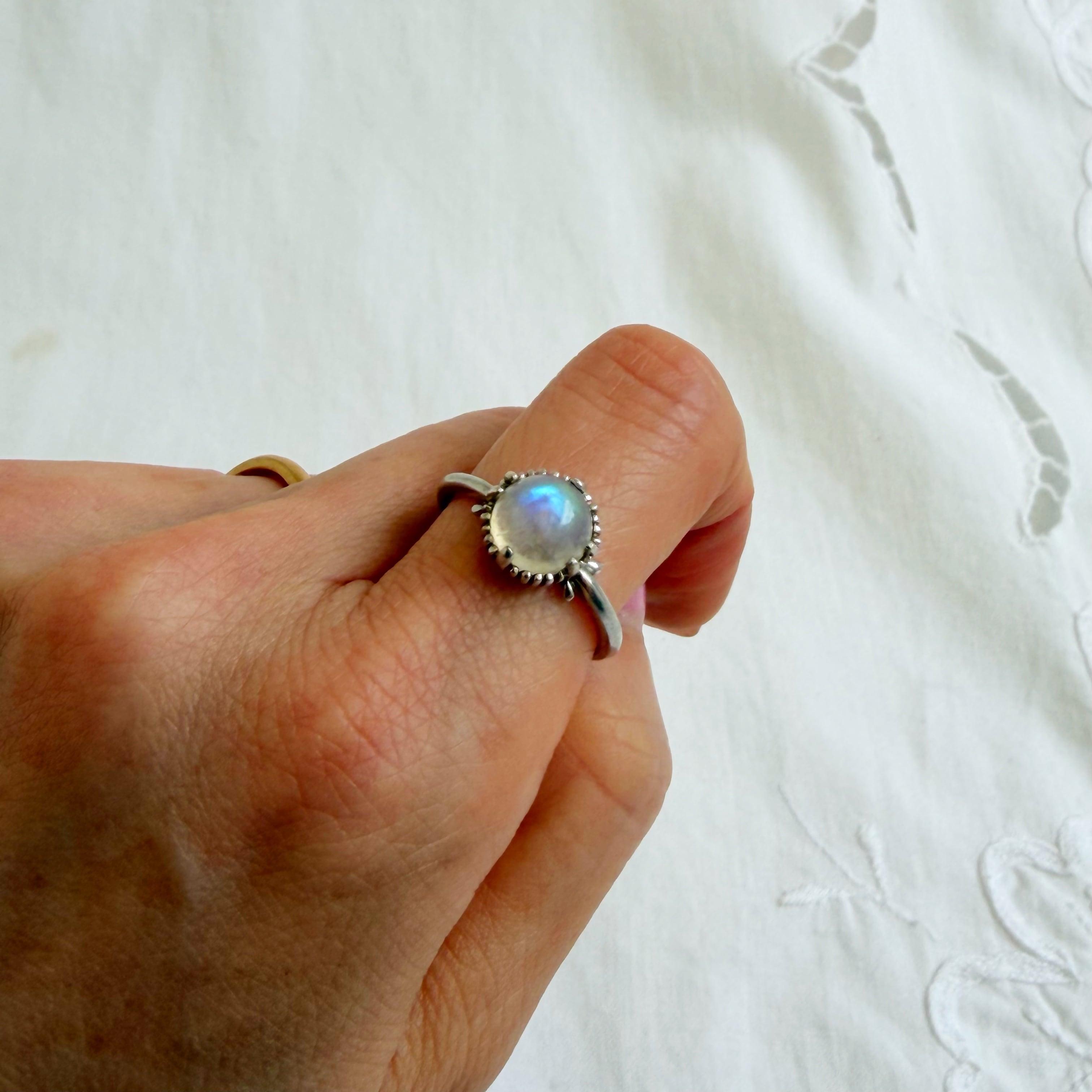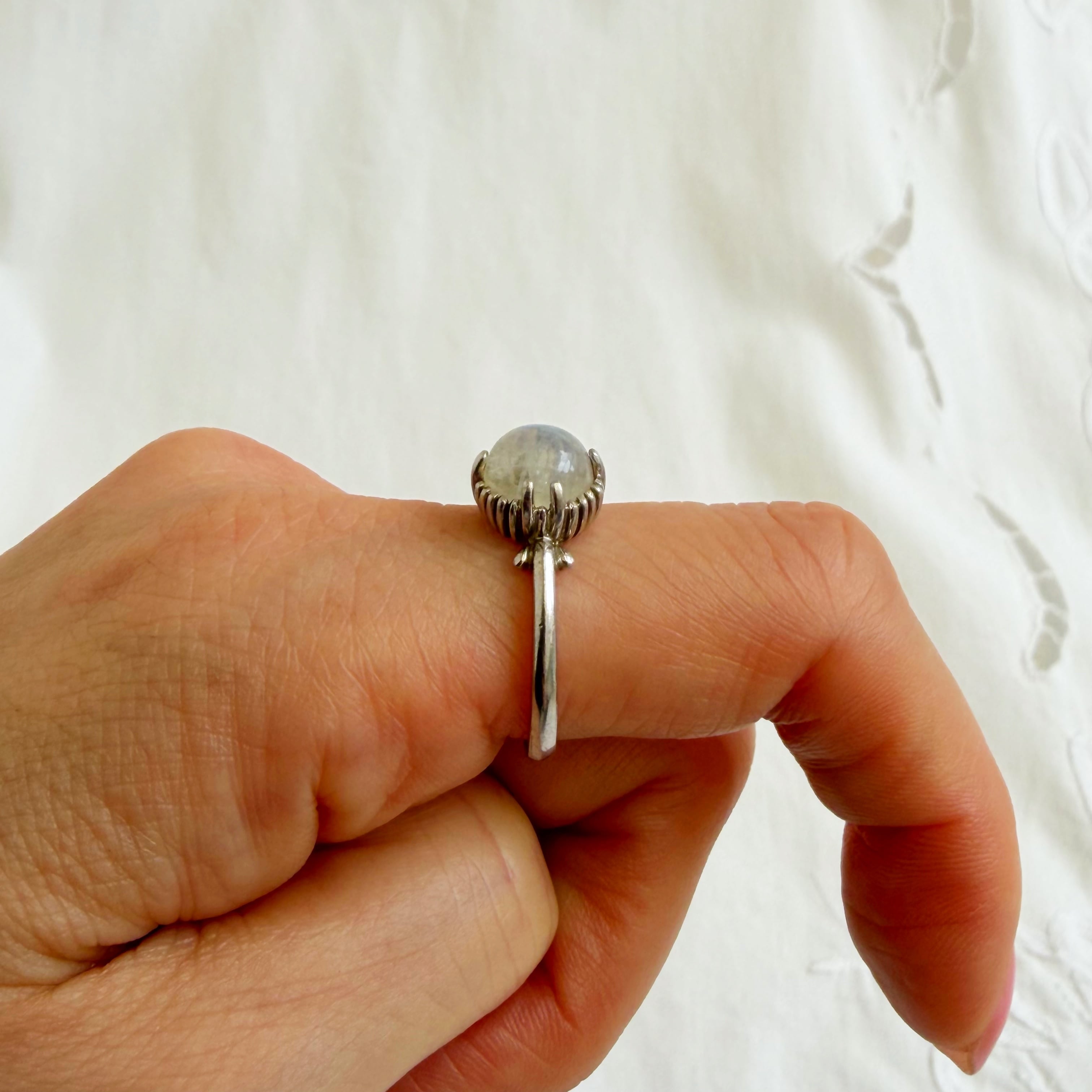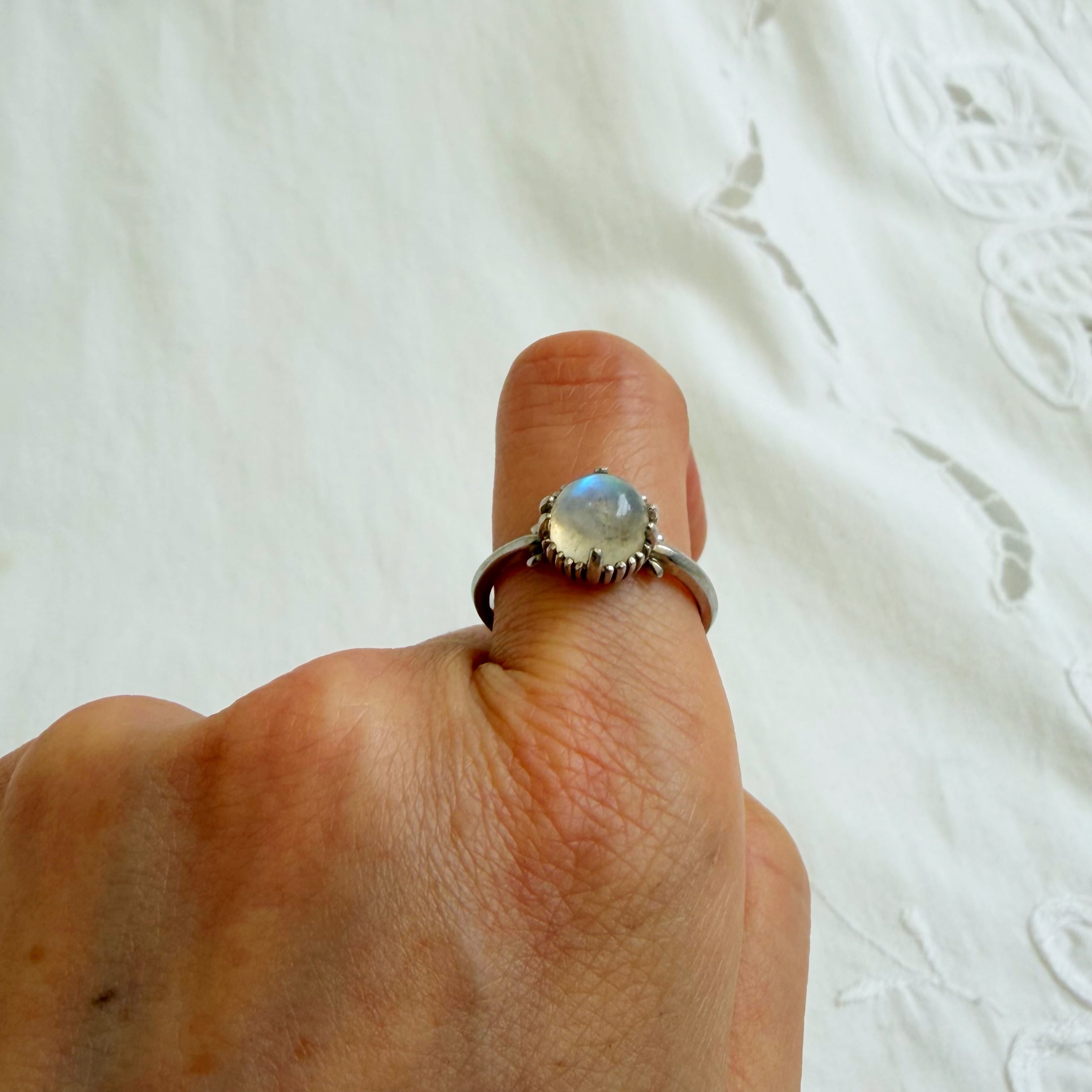 タマムシ色のムーンストーンカボションカットリングになります♡