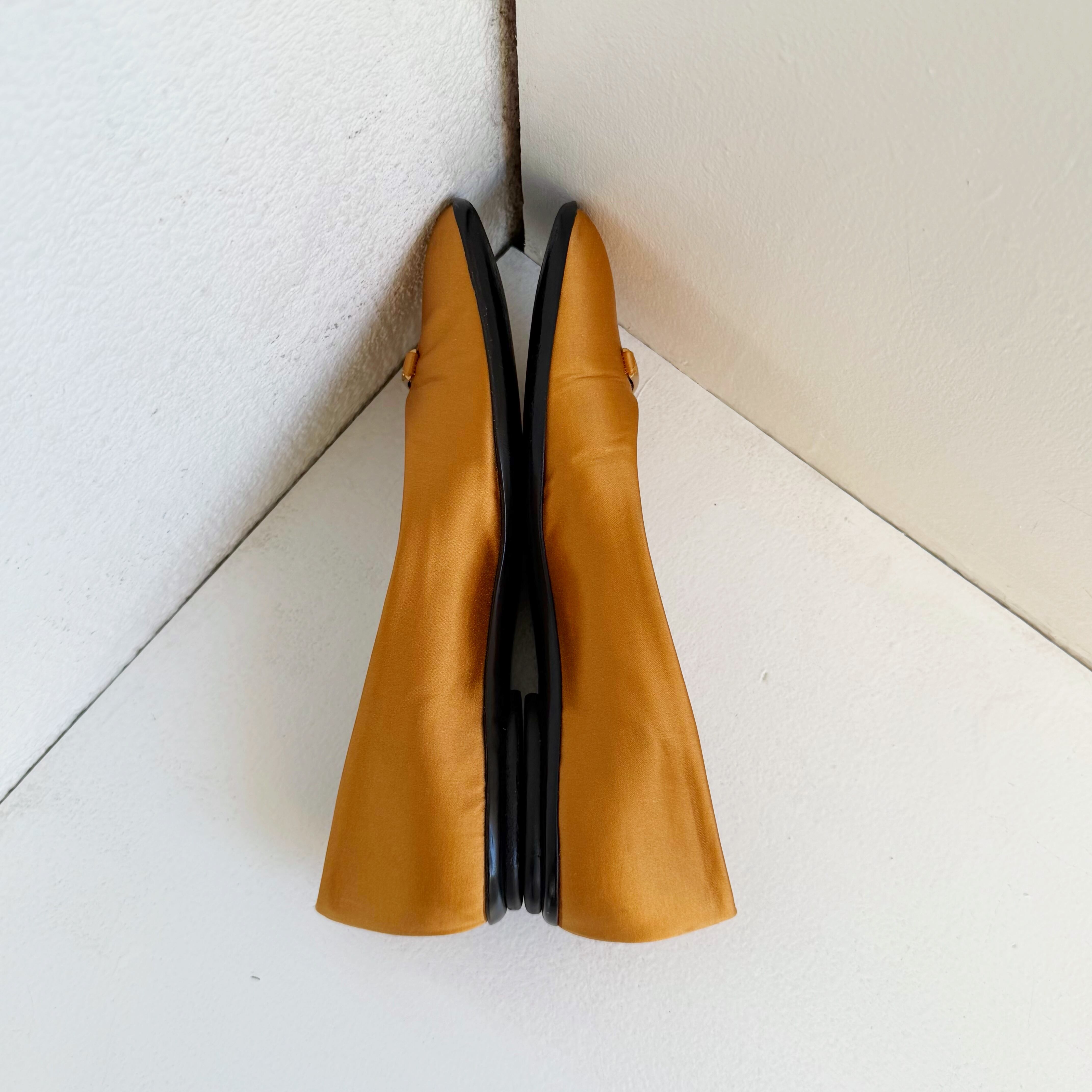 ロゴプレート × サテン フラットシューズ