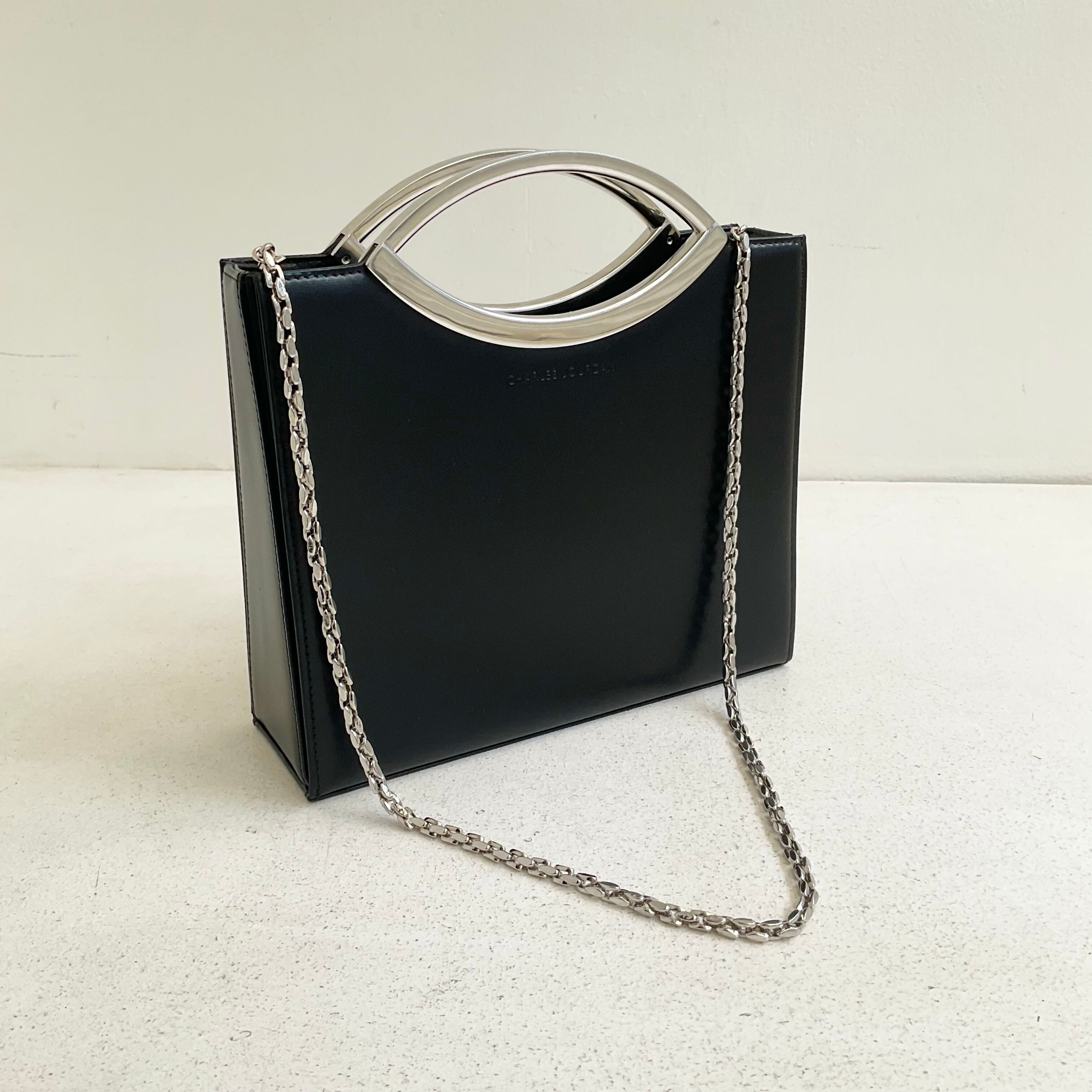CHARLES JOURDAN leather × silver hand & chain shoulder bag
