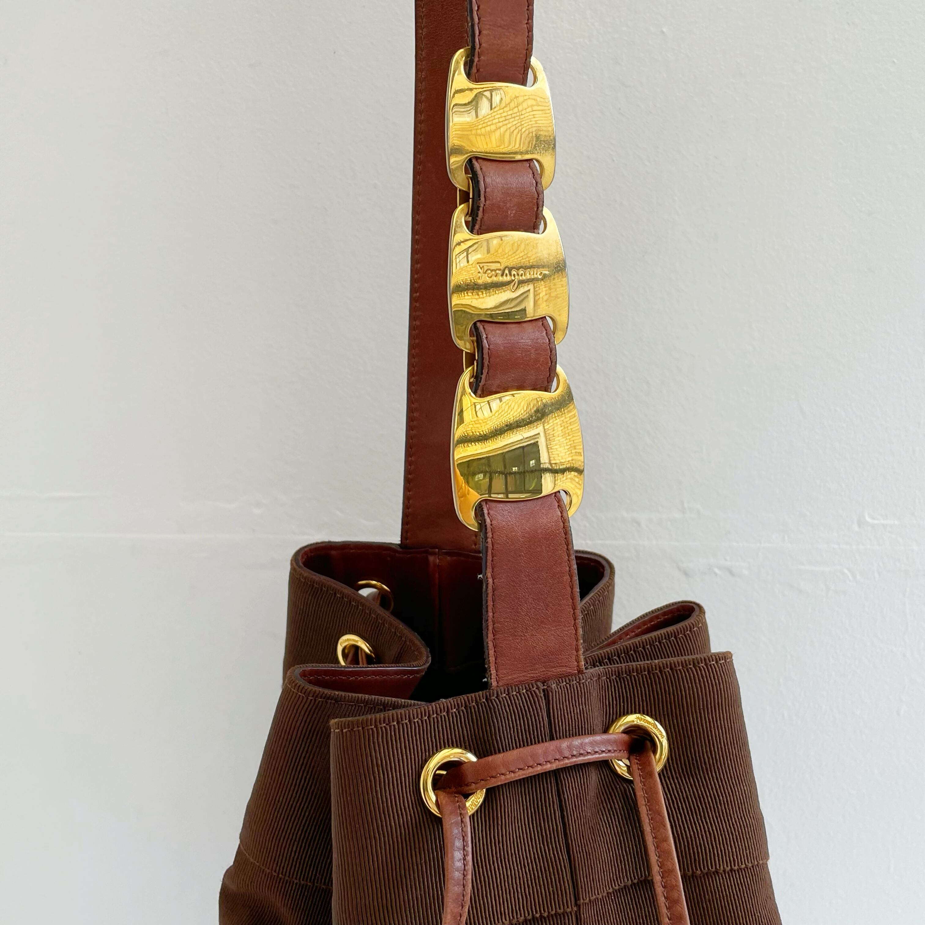 Ferragamo canvs leather shoulder bag