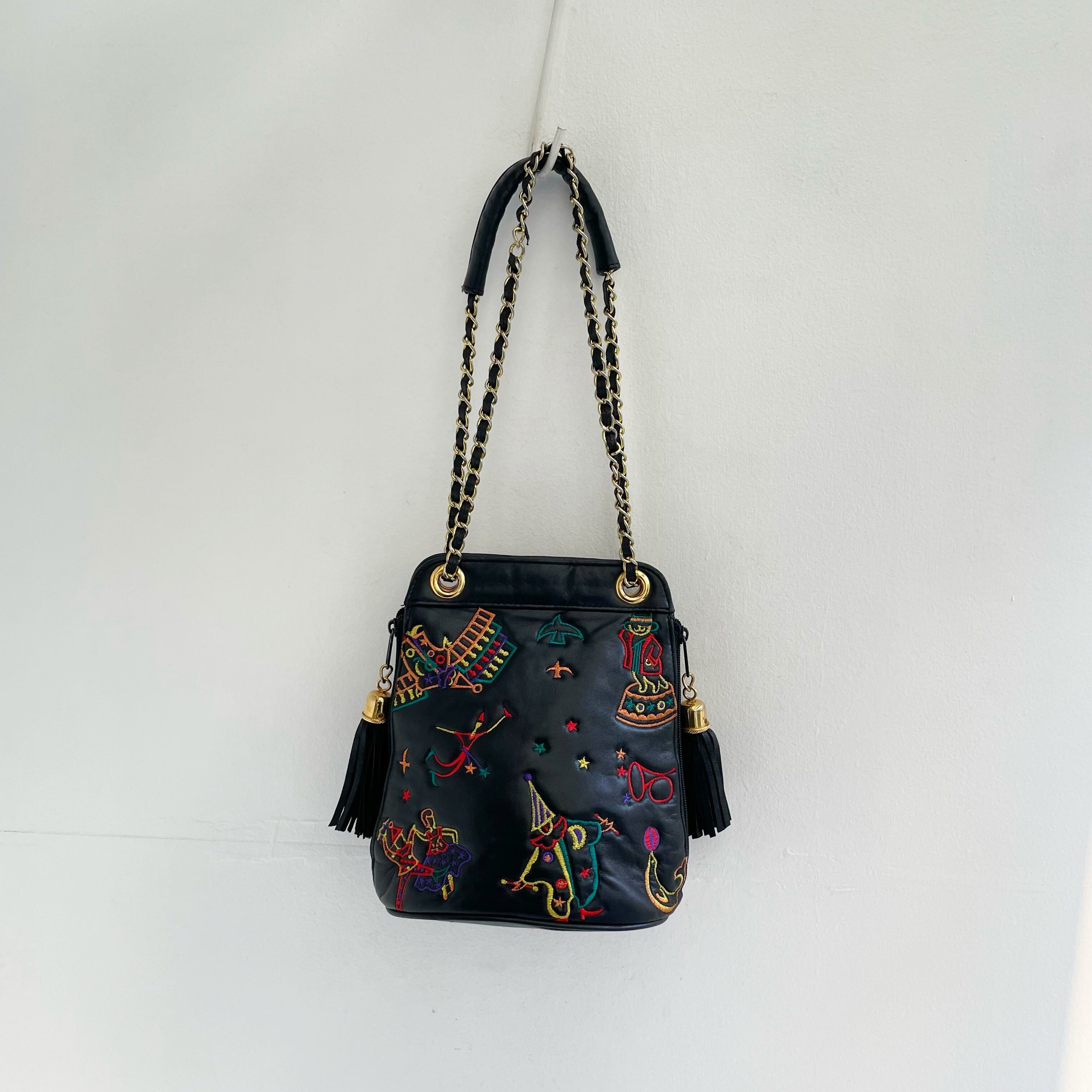Vintage tassel × embroidery chain bag