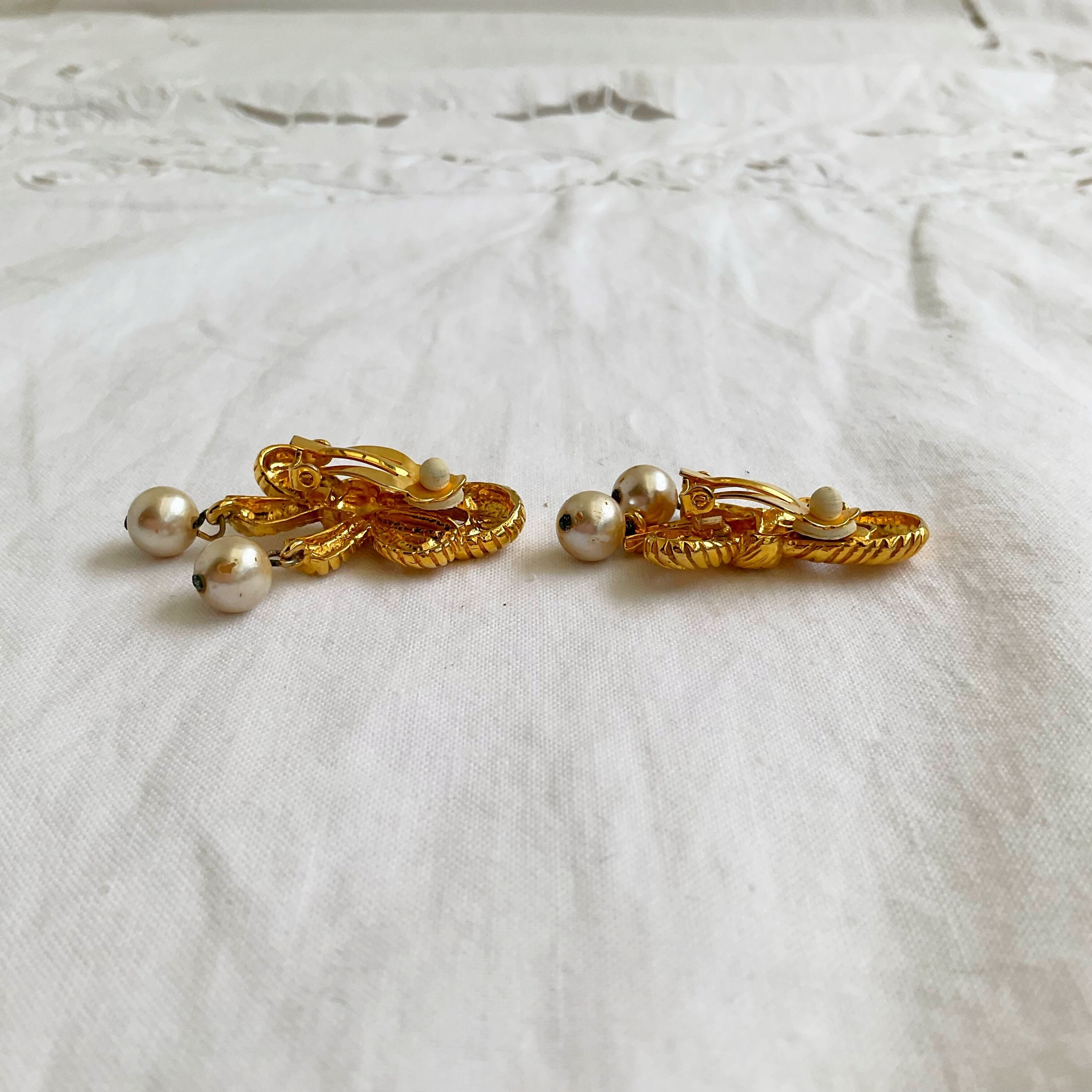 フェイクパール×ゴールド リボンモチーフイヤリング