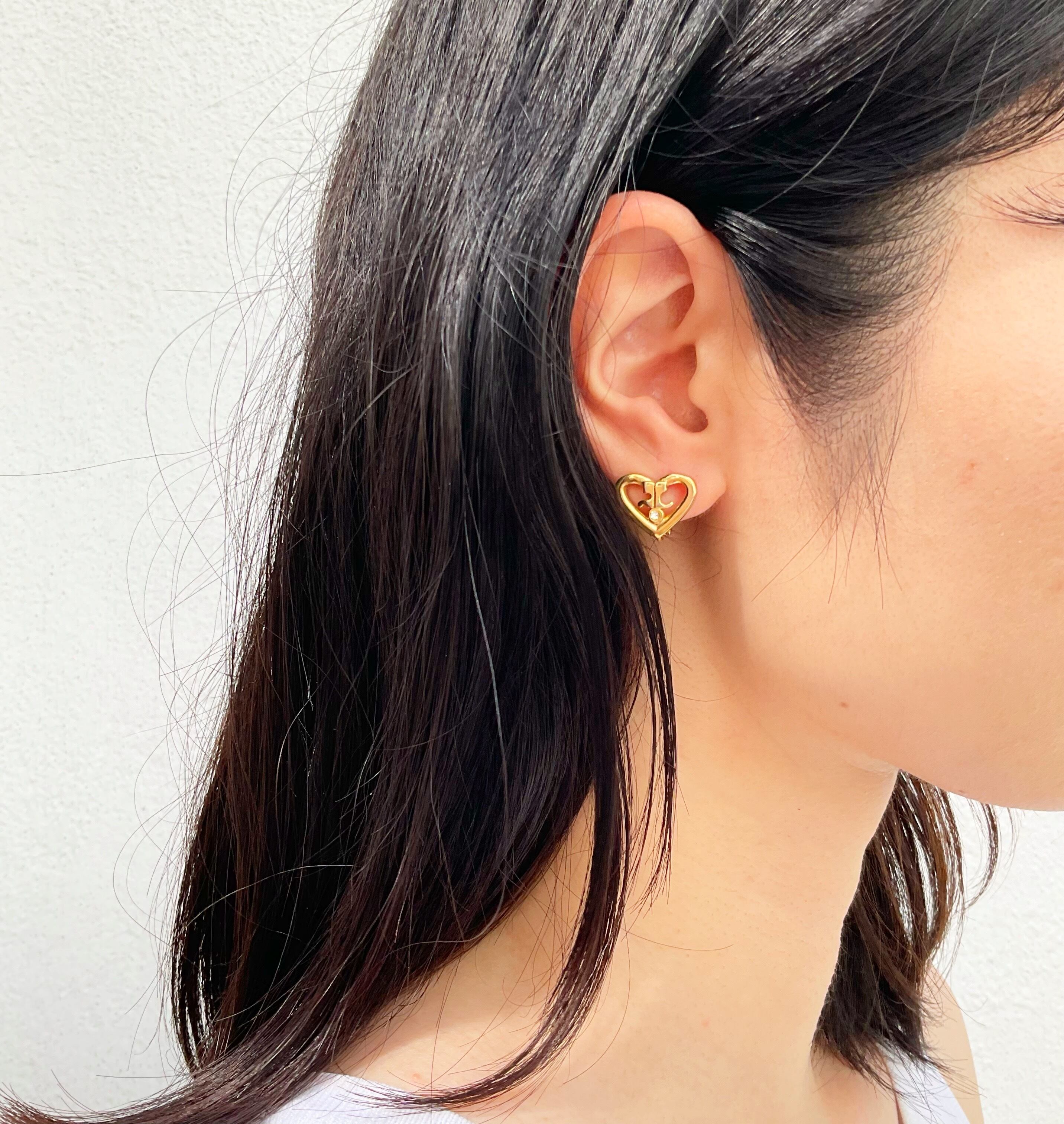 ハート ロゴ ストーン イヤリング