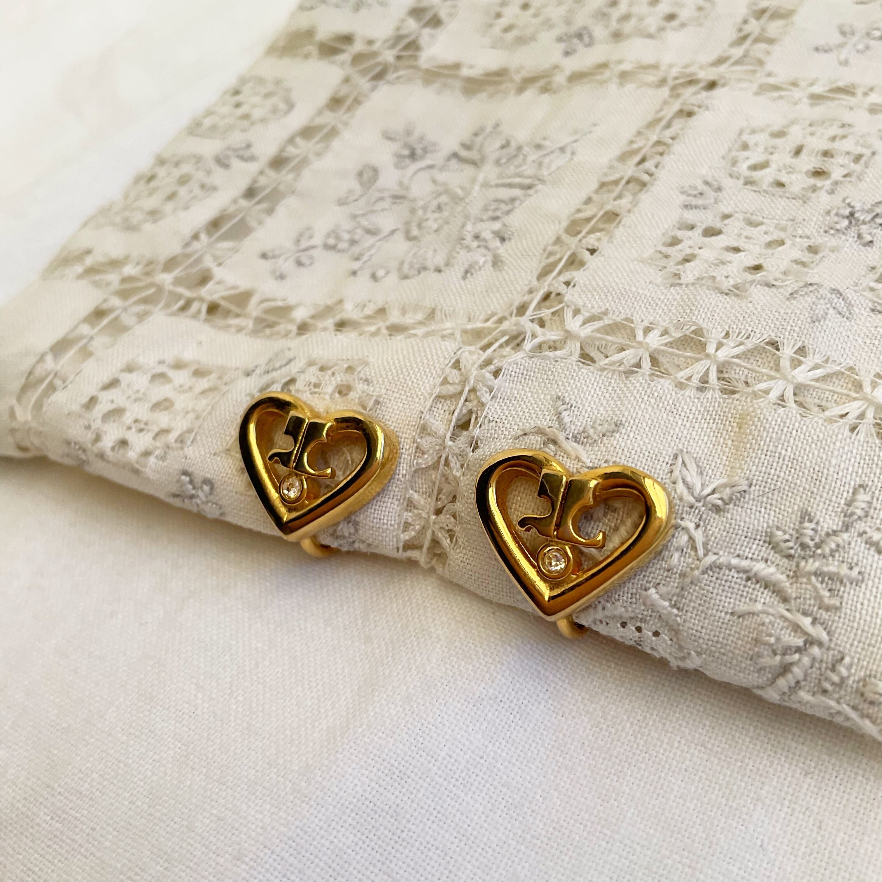 courreges heart logo stone earring