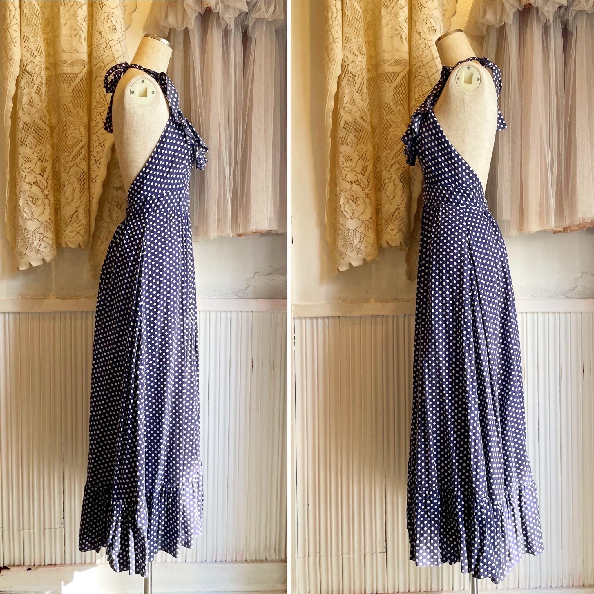 ドット柄 コットン ロングドレス