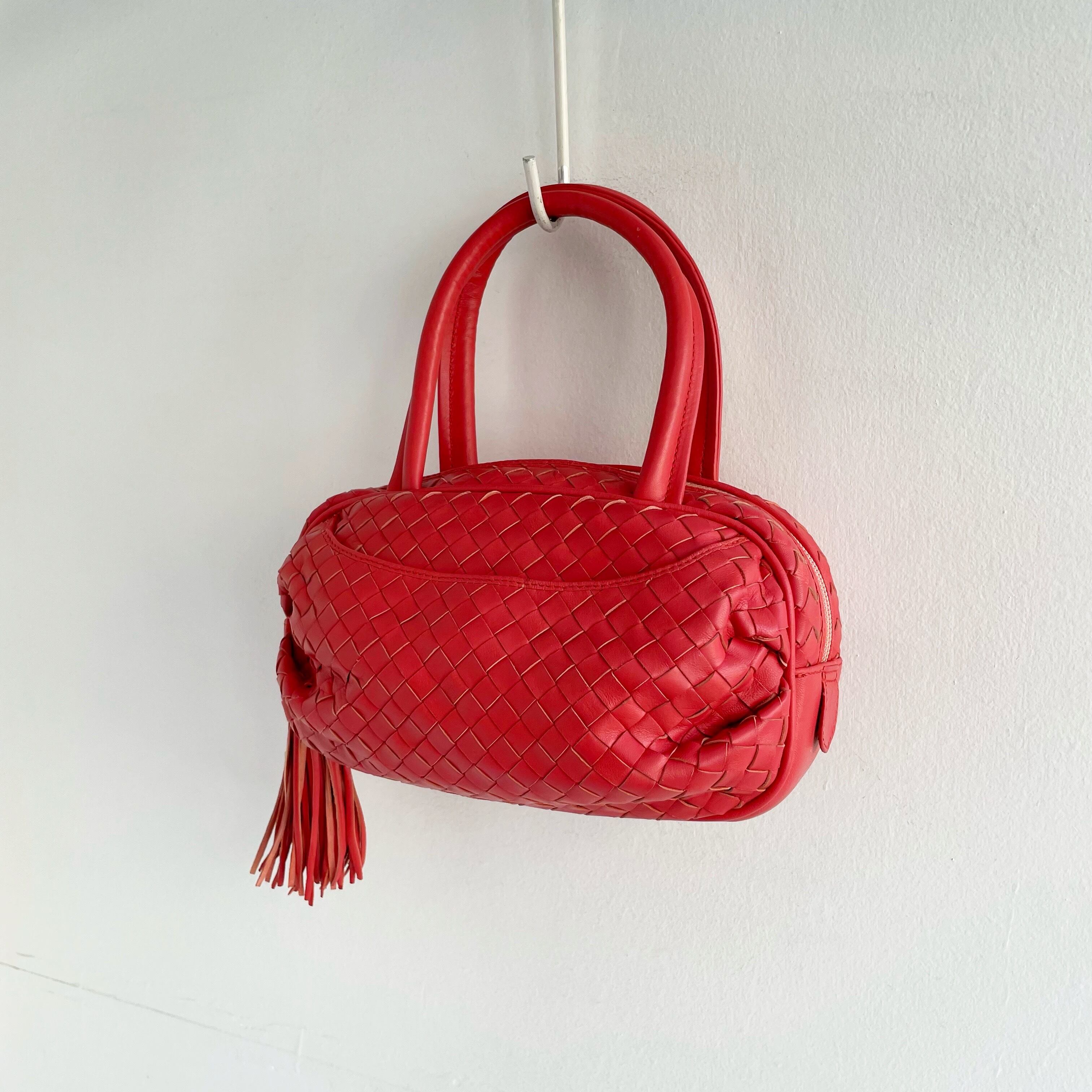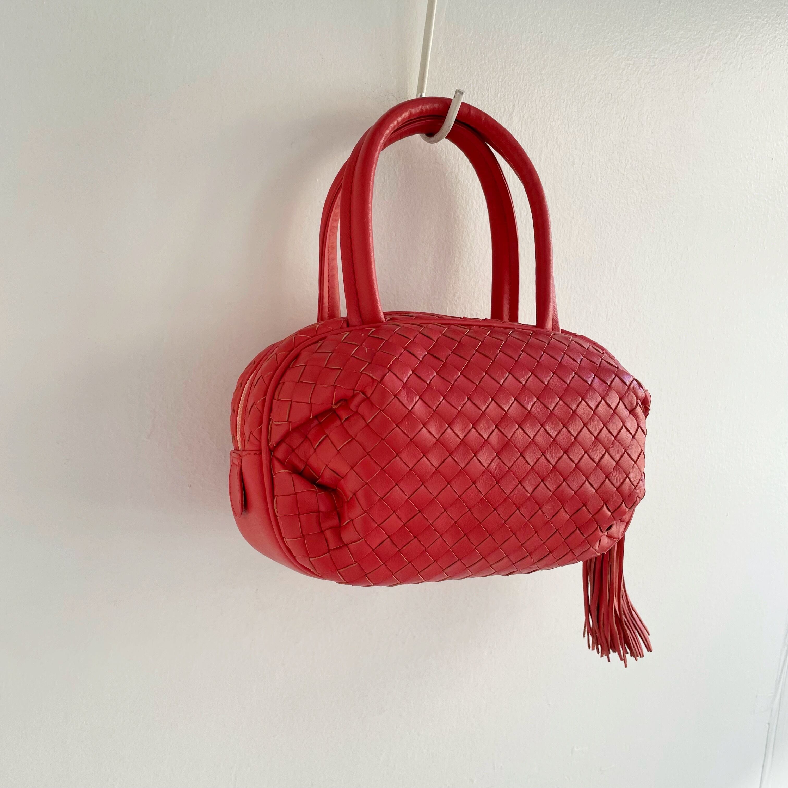 Vintage Italy leather tassel mini bostonbag