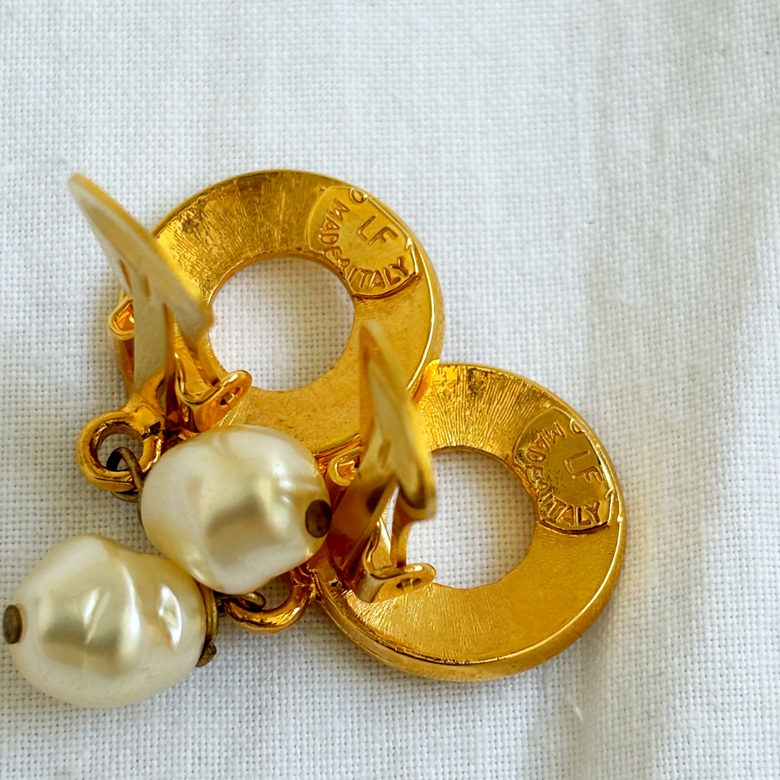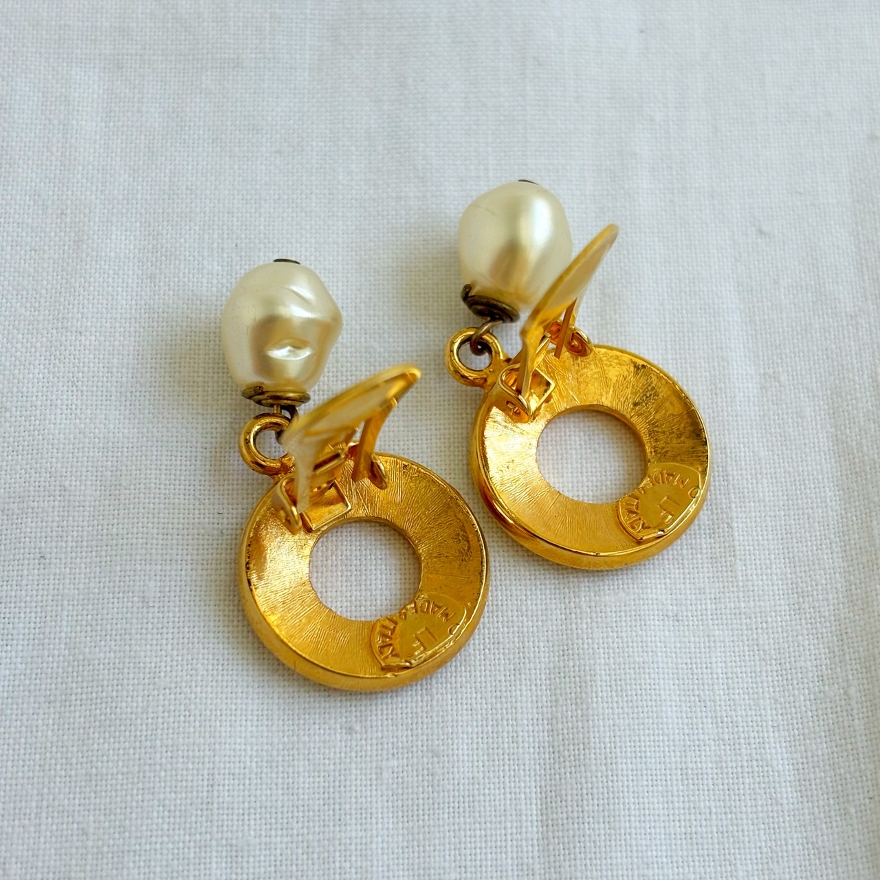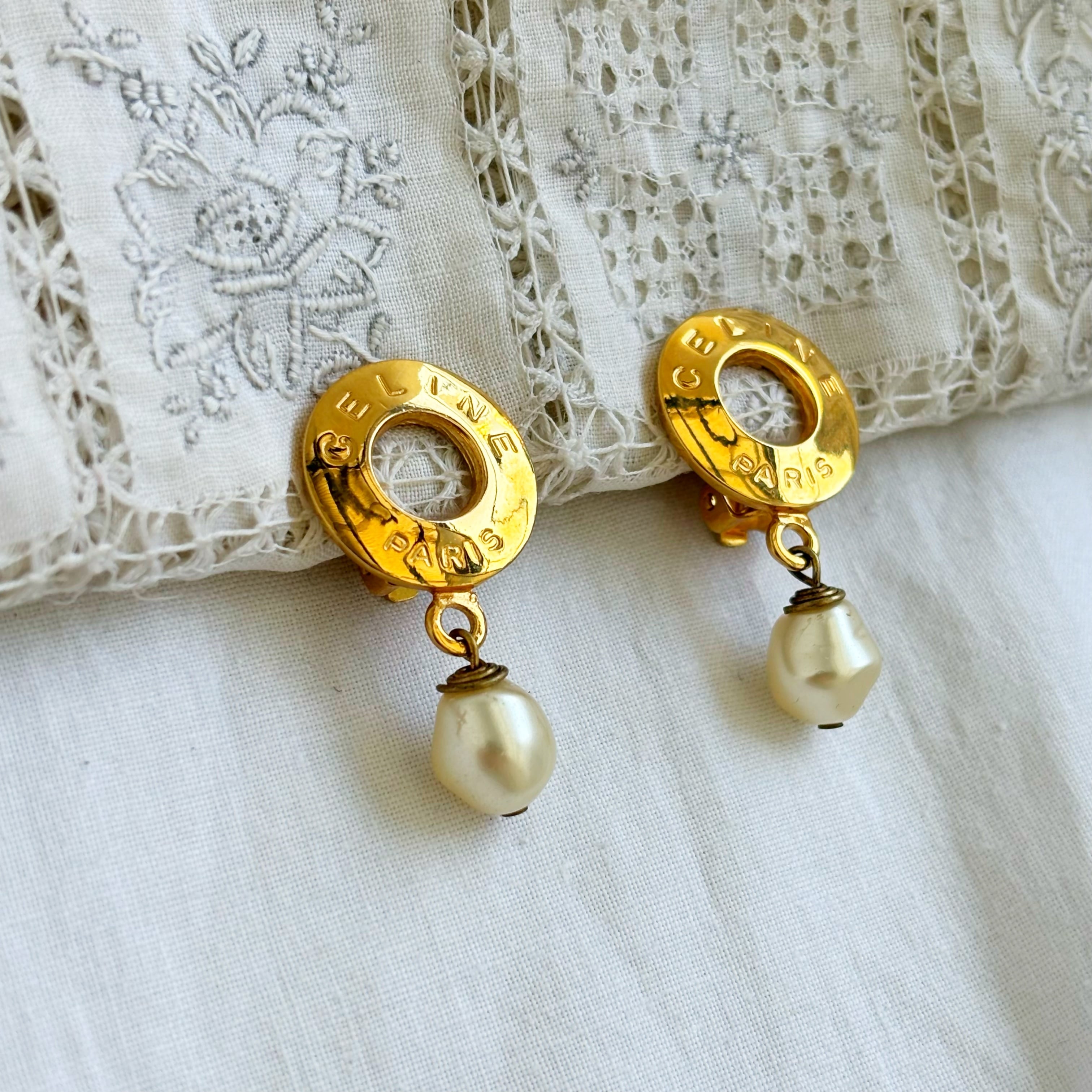 CELINE circle logo pearl swing earrings