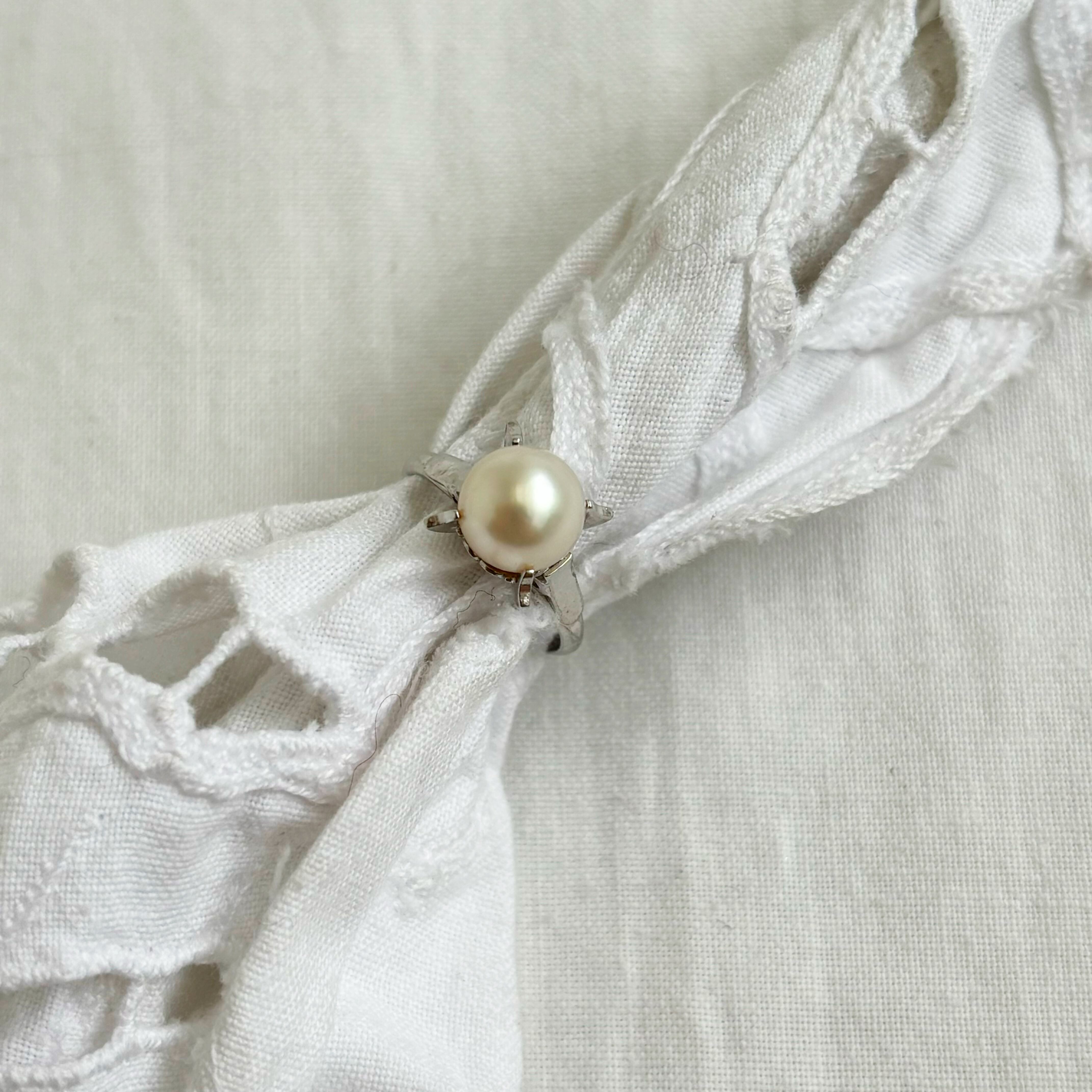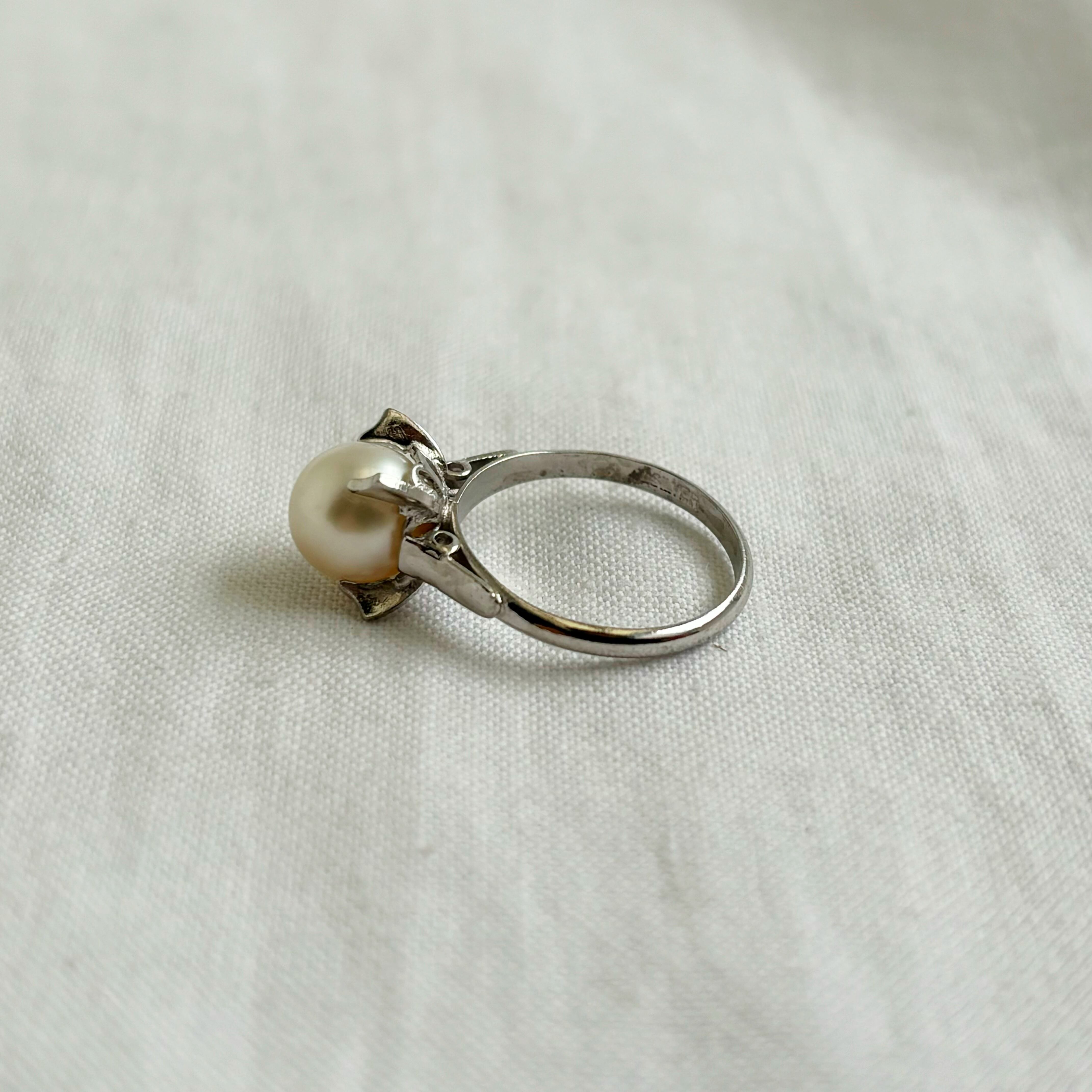 Vintage pearl × silver ring 【9】