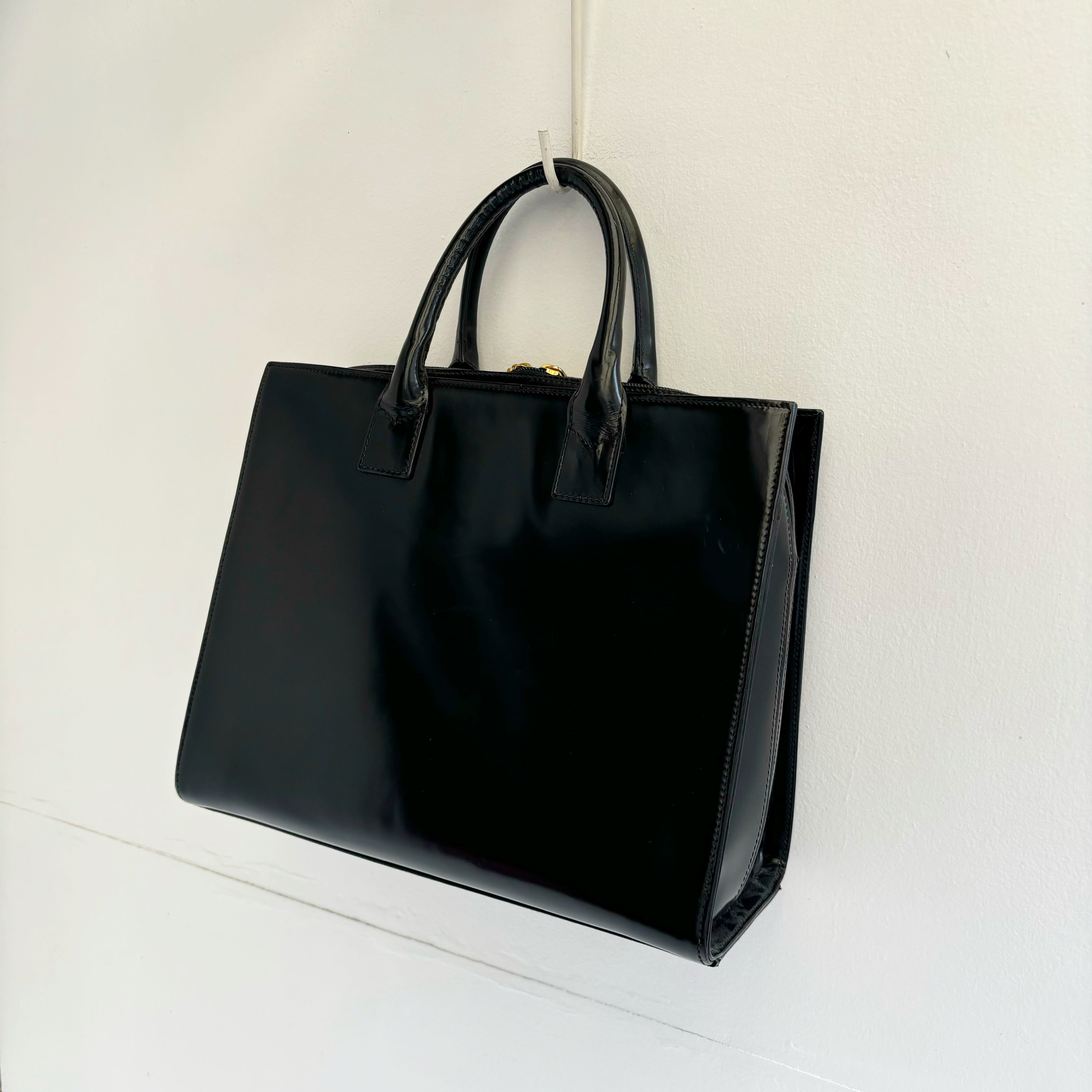 ハラコ ロゴデザイン エナメル ハンド&ショルダーバッグ